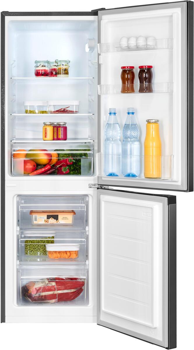 Exquisit KGC231-60-E-050C Stand Kühl-Gefrierkombination, 47,4 cm breit, 157 L, LED Beleuchtung, Super-Kühl-Modus, inoxlook az