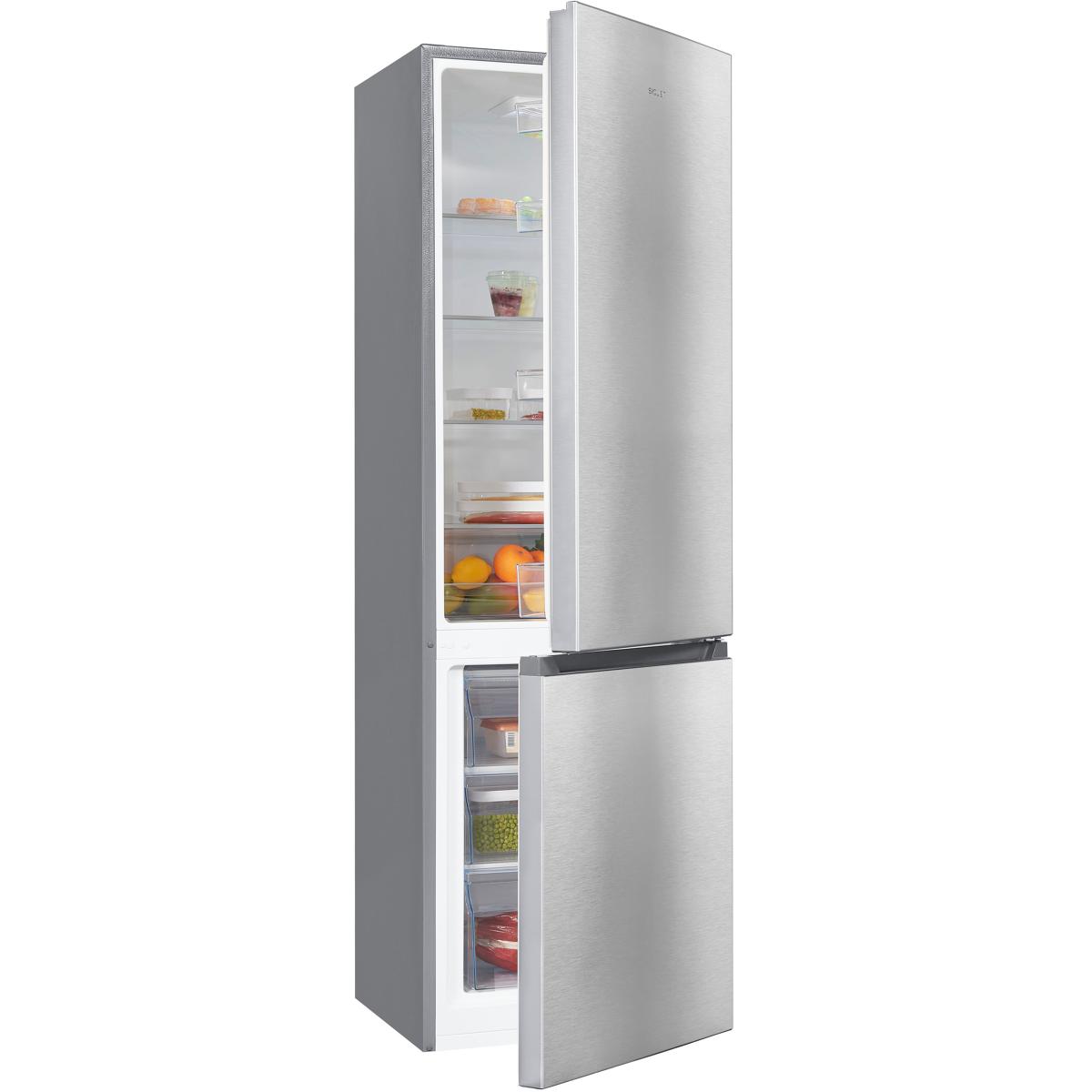 Die Kühl und Gefrierkombination ist die perfekte Lösung, wenn sie nur ein Gerät in ihrer Küche aufstellen aber trotzdem nicht auf ein großzügiges Gefrierfach verzichten wollen. Insgesamt stehen Ihnen 269 l Nutzinhalt zur Verfügung. Das Gerät in der Farbe Edelstahloptik hat die Abmaße 180,0 x 55,0 x 56,0 cm (Höhe/Breite/Tiefe) und hat die Energieeffizienzklasse E (Skala Energieeffizienzklasse A bis G). Durch seine freistehende Bauart lässt es sich an jedem Ort aufstellen und in Betrieb genommen werden. Der wechselbare Türanschlag sorgt hierbei für noch mehr Flexibilität beim Aufstellen.