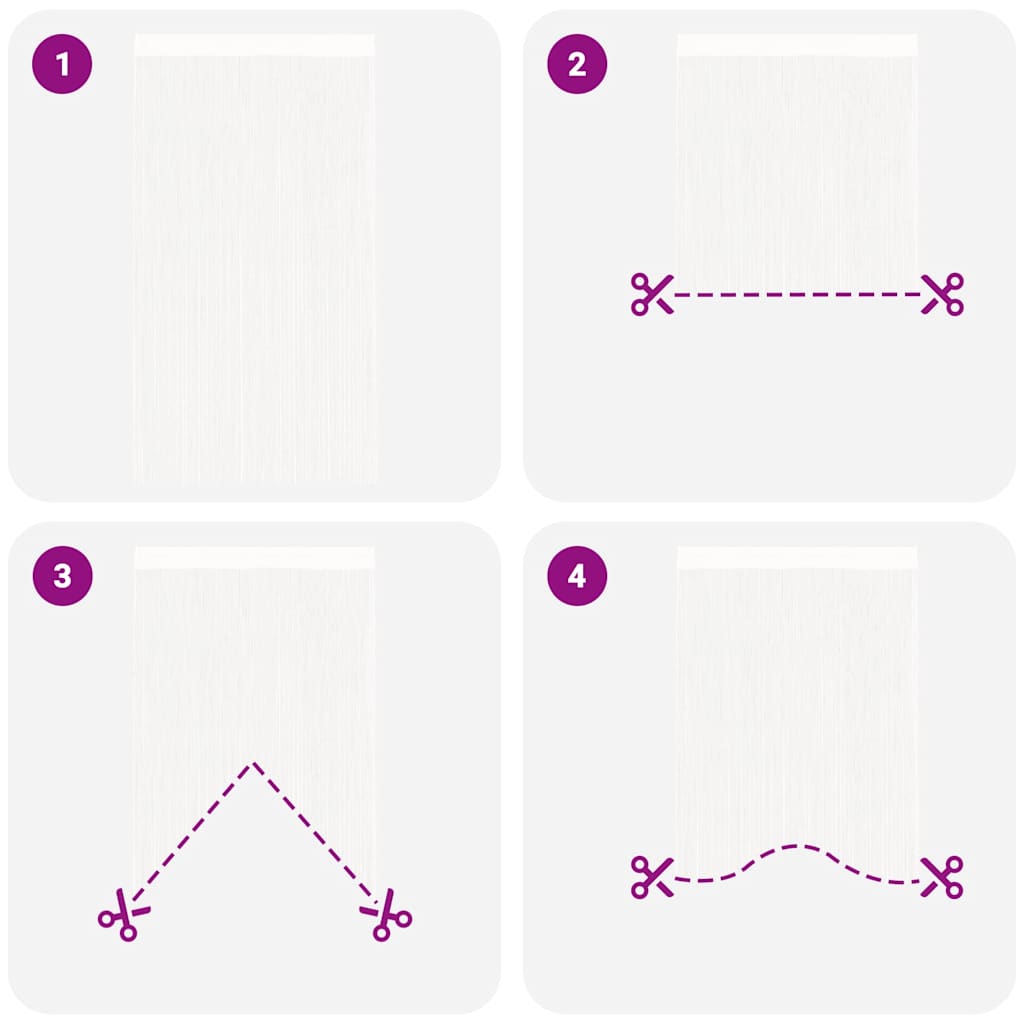 Verschönern Sie Ihre Wohnungseinrichtung mit unseren vielseitigen Fadenvorhängen! Sie lassen sich als Türvorhang, Fenstervorhang, Insektenschutz, Raumteiler oder auch als Schaufensterdekoration einsetzen.Die Vorhänge bestehen aus 100% Polyester und lassen sich bei niedrigen Temperaturen waschen. Bei Bedarf sind die Vorhänge ganz einfach auf die gewünschte Länge kürzbar. Für die Einfache Verwendung mit einer Gardinenstange sind unsere Vorhänge an der Oberseite mit einem Tunneldurchzug ausgestattet. Die Lieferung beinhaltet 2 Vorhänge. Die Gardinenstange ist nicht im Lieferumfang enthalten.