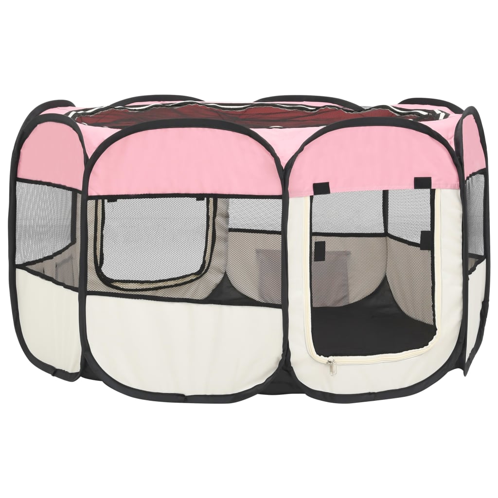 Dieser faltbare Welpenlaufstall ist ideal für das Training von Hunden, die dieen Laufstall als Schlafplatz oder Spielbereich nutzen können. Dieser Laufstall mit einer Größe von 110x110x58 cm eignet sich perfekt für den Einsatz zu Hause oder auf Reisen. Er wird in einer Tragetasche zur bequemen Aufbewahrung geliefert. Dank des starken Stahlrahmens ist es leicht und zugleich sehr robust. Das Maschendach und die Tür können mittels Reißverschluss schnell geöffnet oder zugemacht werden. Die seitlichen Netze sorgen für gute Luftzirkulation und gute Sicht. Darüber hinaus sind die Seitentaschen geeignet, um kleine Gegenstände wie Spielzeug aufzubewahren. Bei Nichtgebrauch kann dieser Laufkäfig dank seines faltbaren Designs leicht aufbewahrt werden.