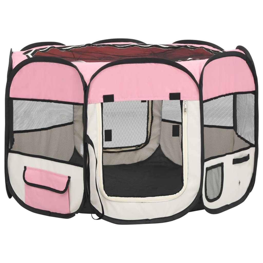 Dieser faltbare Welpenlaufstall ist ideal für das Training von Hunden, die dieen Laufstall als Schlafplatz oder Spielbereich nutzen können. Dieser Laufstall mit einer Größe von 90×90×58 cm eignet sich perfekt für den Einsatz zu Hause oder auf Reisen. Er wird in einer Tragetasche zur bequemen Aufbewahrung geliefert. Dank des starken Stahlrahmens ist es leicht und zugleich sehr robust. Das Maschendach und die Tür können mittels Reißverschluss schnell geöffnet oder zugemacht werden. Die seitlichen Netze sorgen für gute Luftzirkulation und gute Sicht. Darüber hinaus sind die Seitentaschen geeignet, um kleine Gegenstände wie Spielzeug aufzubewahren. Bei Nichtgebrauch kann dieser Laufkäfig dank seines faltbaren Designs leicht aufbewahrt werden.