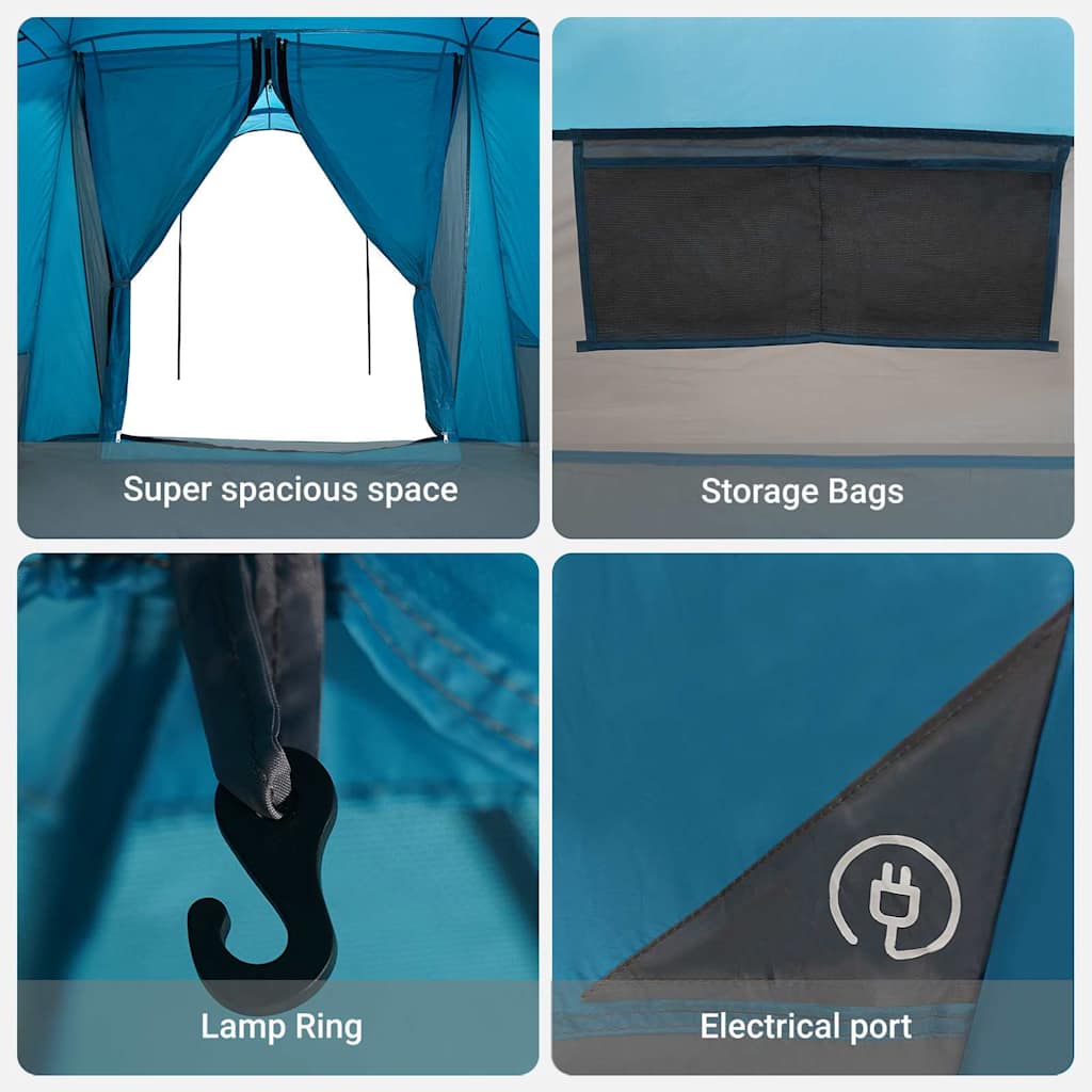 Das blaue Falt Campingzelt ist perfekt fr Leute, die drauen unterwegs sind und einen praktischen, coolen Ort zum bernachten brauchen. Es bietet Platz fr bis zu vier Erwachsene ideal fr Familien oder Gruppen beim Campen. Hergestellt aus wasserdichtem Polyester und einem stabilen Fiberglasrahmen, ist es dein sicherer Rckzugsort in der Natur. Die schne blaue Farbe bringt den besonderen Kick in dein Outdoor-Setup und das faltbare Design macht den Transport bei deinen Wanderungen oder Wochenendausflgen super einfach. Mit Abmessungen von 335 cm Breite, 721 cm Lnge und 212 cm Hhe hast du genug Platz fr dein Camping-Zubehr, um drauen eine tolle Zeit zu haben.