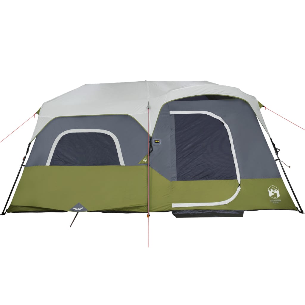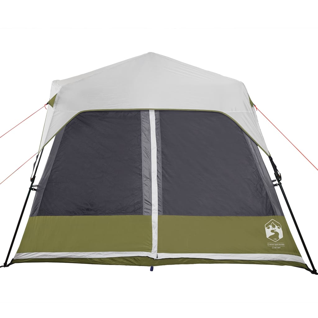 Dieses moderne Familienzelt schützt vor unangenehmen Wetter und bietet einen komfortablen Platz bei Abenteuern. Rundum wasserdichtes Design: Aus Polyester mit PU-Beschichtung gefertigt, ist dieses Campingzelt wasser- und winddicht. Die versiegelten Nähte verhindern effektiv das Eindringen von Regenwasser, während die strapazierfähige Bodenplane für ein trockenes und komfortables Interieur sorgt. Quick-Release-System: Dank des Quick-Release-Systems lässt sich das Zelt mühelos aufbauen! Lege das Zelt auf den Boden, ziehe das vormontierte Gestänge heraus, bis es einrastet, und schon ist das Zelt einsatzbereit!LED-Beleuchtung: Dieses Zelt ist mit LED-Leuchten ausgestattet. Diese haben drei Helligkeitsstufen: Hoch, Niedrig und Nachtlicht. Die Zeltbeleuchtung kann entweder mit einer Powerbank oder mit 4D-Batterien betrieben werden (keine davon ist im Lieferumfang enthalten). Der lichtstreuende Stoff sorgt für eine gleichmäßige Beleuchtung im gesamten Zelt und schafft so eine gemütliche und gut beleuchtete Umgebung für all deine Camping-Abenteuer.Praktischer Zugang zum Stromkabel: Dank des E-Anschlusses kannst du ganz einfach ein Verlängerungskabel von einer externen Stromquelle an dein Zelt anschließen.Abnehmbares Überzelt: Das abnehmbare Überzelt lässt sich an der Zeltoberseite befestigen, um Wetterschutz zu bieten und Privatsphäre zu schaffen. Achtung:Halte alle Flammen und Wärmequellen von diesem Zeltstoff fern.