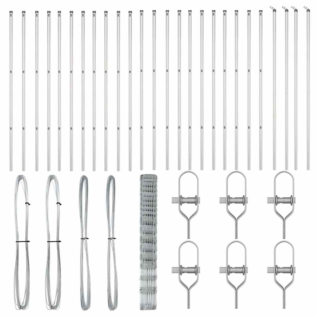 Der vidaXL Feldzaun verbindet stabilen, verzinkten Stahl mit praktischer Funktion und ist die ideale Barriere für viele Außenanwendungen. Das elegante silberne Finish und die robuste Bauweise bieten Sicherheit und verbessern gleichzeitig das Aussehen deines Außenbereichs ? perfekt für Häuser, Gärten und Höfe. Robuste Bauweise: Der verzinkte Stahl garantiert eine langlebige und wetterfeste Barriere, die überall für Sicherheit sorgt. Schneller Aufbau: Alle notwendigen Teile wie Zaunnetz, Pfosten und Befestigungen sind enthalten, für eine mühelose Montage ? stell ihn im Handumdrehen auf! Vielseitig einsetzbar: Perfekt, um Gärten einzuzäunen und dein Eigentum zu sichern, passt super zu verschiedenen Outdoor-Bedürfnissen. Starkes Design: Robuste Pfosten halten ihn stabil, resilient gegen schwierige Bedingungen und über die Zeit beständig. Stylischer Look: Mit seiner glatten und halbtransparenten Textur bringt der Zaun einen modernen Touch in deinen Außenbereich, während er gleichzeitig seinen Job macht.