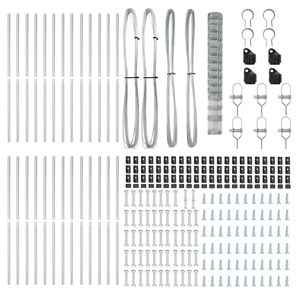 Der vidaXL Feldzaun kombiniert robusten verzinkten Stahl mit einem minimalistischen Look und ist somit eine tolle Barriere für draußen. Mit seinem glänzenden silbernen Finish und dem stabilen Design sorgt er nicht nur für Sicherheit, sondern sieht dabei auch gut aus. Ideal für Häuser, Gärten und mehr. Robuste Bauweise: Die verzinkte Stahlstruktur sorgt für eine langlebige und wetterfeste Barriere, die dir in jedem Außenbereich Sicherheit bietet. Einfache Montage: Alles, was du für eine einfache Montage mit wenigen Werkzeugen brauchst, ist dabei. Flexible Nutzung: Ideal für das Einzäunen von Außenbereichen in Höfen, Gärten oder anderen Außenbereichen, die mühelos verschiedenen Anforderungen gerecht werden. Robustes Design: Die stabilen Pfosten sind gemacht, um unterschiedlichen Witterungen standzuhalten und sorgen für außergewöhnliche Langlebigkeit und Zuverlässigkeit. Einfaches Aussehen: Mit einer glatten und ordentlichen Oberfläche verleiht dieser Zaun deinem Außenbereich einen modernen Touch, während er gleichzeitig gut funktioniert.