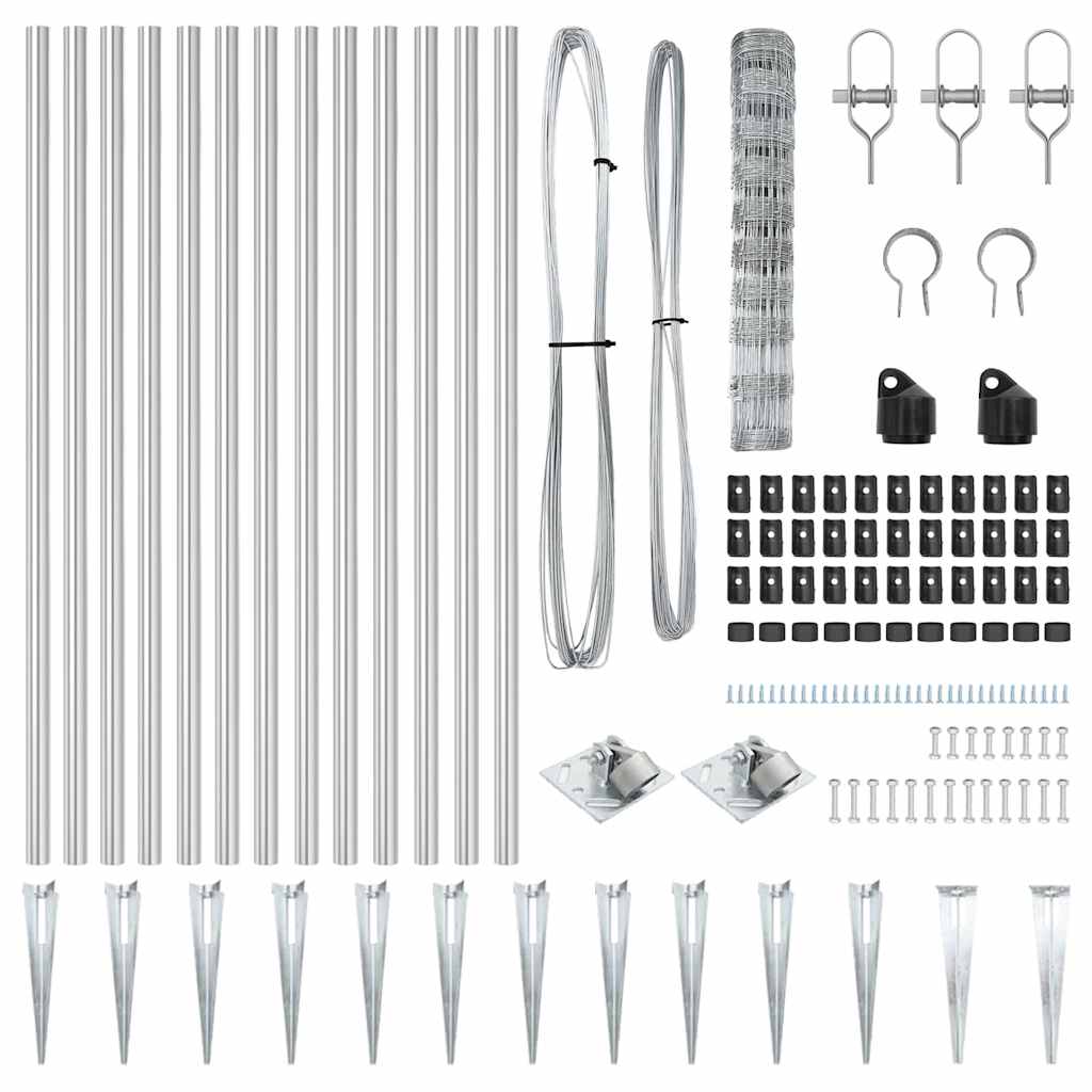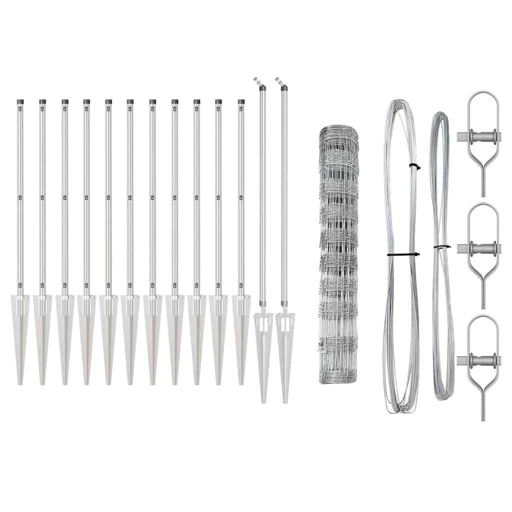 Dieser vidaXL Feldzaun kombiniert einen starken verzinkten Stahl mit vielseitiger Funktionalität. Er ist eine essenzielle Barriere für verschiedene Außenaktivitäten. Mit seinem schlanken Silberfinish und der robusten Bauweise sorgt er nicht nur für Sicherheit, sondern verschönert auch deinen Garten. Robuste Konstruktion: Die verzinkte Stahlstruktur sorgt für eine langlebige und wetterfeste Barriere, die dir draußen Sicherheit gibt. Einfache Montage: Alles, was du brauchst, ist zusammen dabei, sodass du es fix erledigen kannst. Vielfältige Nutzung: Ideal für Gärten oder andere Außenbereiche - passt passt problemlos zu verschiedenen Bedürfnissen. Starkes Design: Die robusten Pfosten sind so gebaut, um den Test der Zeit und der Natur zu bestehen. Stilvolles Aussehen: Mit seinem polierten Finish bringt dieser Zaun modernen Flair in deinen Außenbereich.
