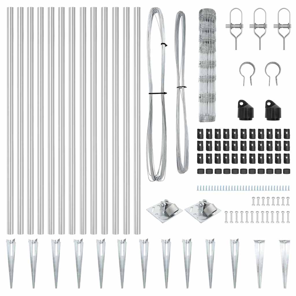 Der vidaXL Feldzaun ist stark und praktisch und damit die ideale Barriere für alle Arten von Außenanwendungen. Mit seiner schicken silbernen Oberfläche und stabilen Konstruktion schützt er nicht nur deinen Bereich, sondern verbessert auch das Aussehen deines Gartens oder Hofs. Robust gebaut: Die verzinkte Stahlstruktur bietet eine langlebige und wetterfeste Barriere und gibt dir Sicherheit. Schnell aufzubauen: Alle wichtigen Teile sind dabei für eine einfache Montage, damit du alles schnell erledigen kannst. Vielseitig einsetzbar: Ideal für die Sicherheit im Freien, erfüllt mühelos verschiedene Bedürfnisse. Stabile Konstruktion: Die starken Pfosten sorgen dafür, dass er auch unter schwierigen Bedingungen gut steht. Stylisches Aussehen: Mit einer glatten Oberfläche verleiht dieser Zaun deinem Außenbereich einen modernen Touch, während er seinen Hauptzweck erfüllt.