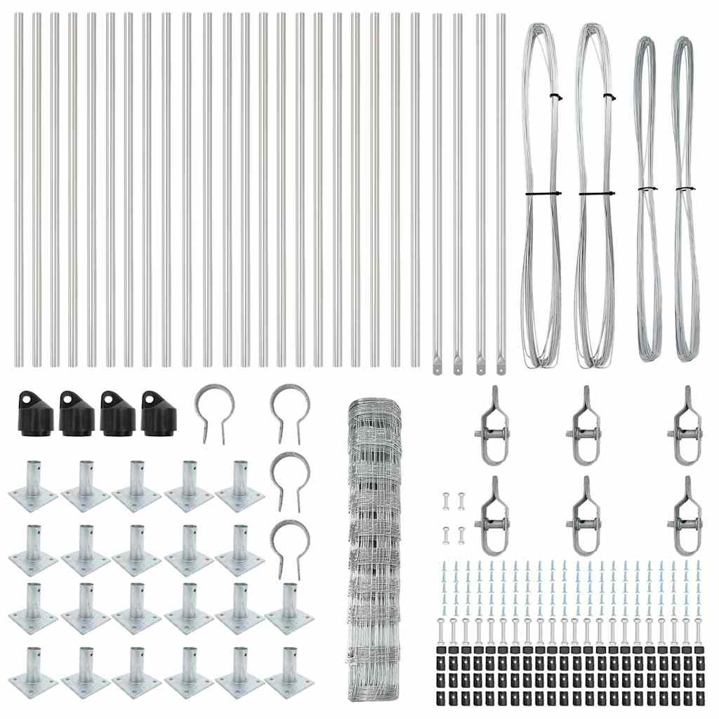 Der vidaXL Feldzaun verbindet robusten galvanisierten Stahl mit praktischer Funktionalität und ist eine wichtige Barriere für verschiedene Außenanwendungen. Seine stylische silberne Farbe und solide Bauweise sorgen für Sicherheit und Stil. Perfekt für Gärten, Höfe und Farmen. Robuste Konstruktion: Der galvanisierte Stahl kann schwere Gegenstände sicher halten, sodass du dir keine Sorgen machen musst. Einfacher Aufbau: Du bekommst alles, was du brauchst ? Zaunplatten, Pfosten und Betonfundamente, für einen reibungslosen Aufbau zu zweit. Vielseitige Nutzung: Ideal für Gartenumzäunungen, Sicherheit im Garten und Farmanwendungen, die verschiedene Bedürfnisse im Freien mühelos abdecken. Robuste Bauweise: Die stabilen Pfosten stehen auch unter schwierigen Bedingungen fest, sodass dein Zaun stark und stabil bleibt. Glatte Oberfläche: Dieser Zaun hat ein stylisches Design, das deinem Außenbereich einen modernen Look verleiht, während er seine Aufgabe gut erfüllt.