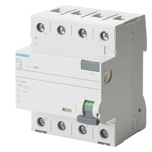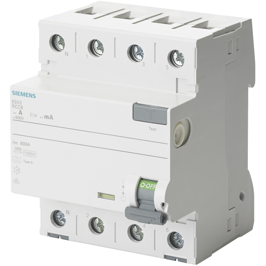 Siemens FI-Schutzschalter, 4-polig, Typ A, In: 40 A, 30 mA, Un AC: 400 V