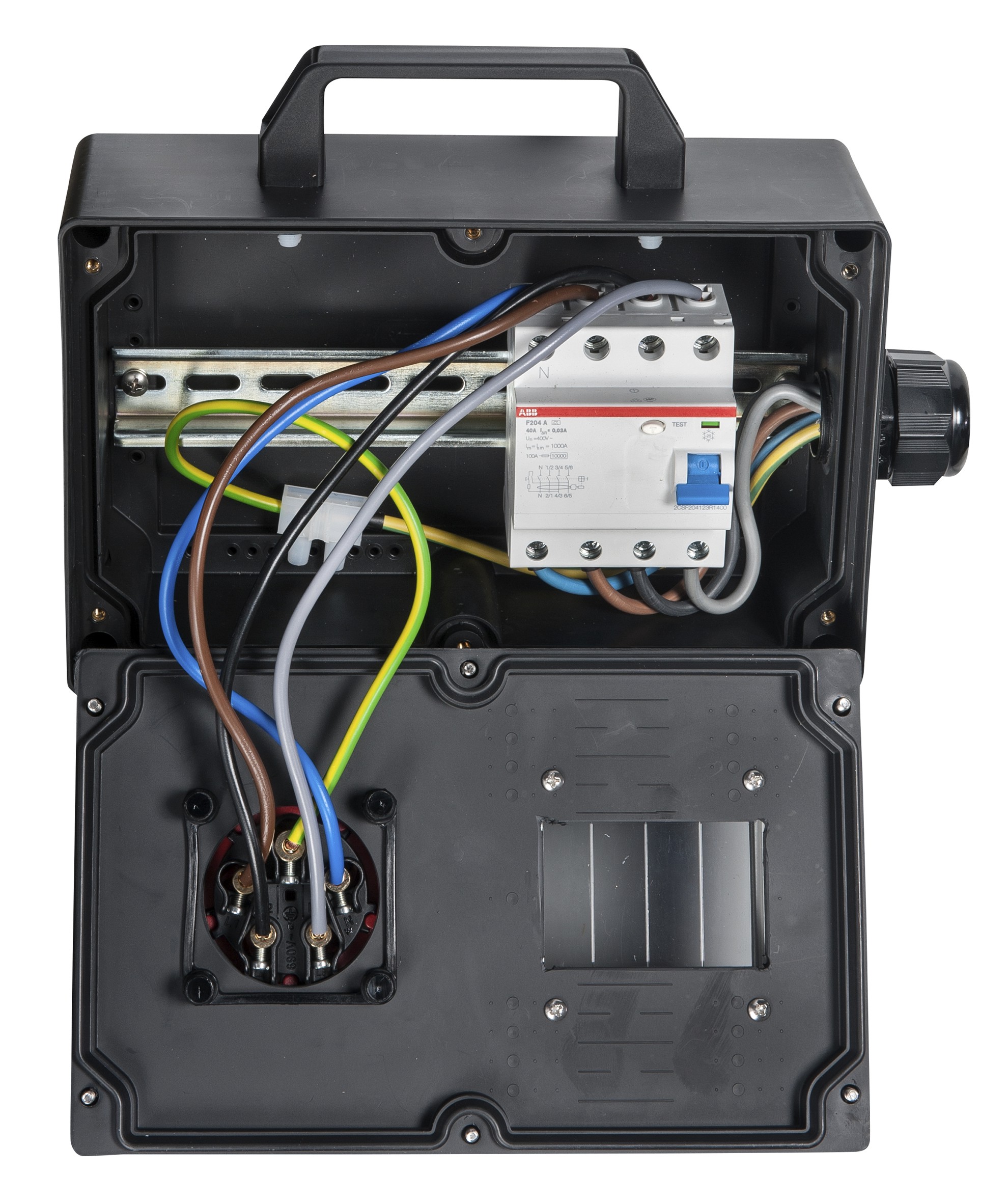 - die Schutzschaltgeräte sind unter einer transparenten, schlagfesten Polycarbonatabdeckung eingebaut