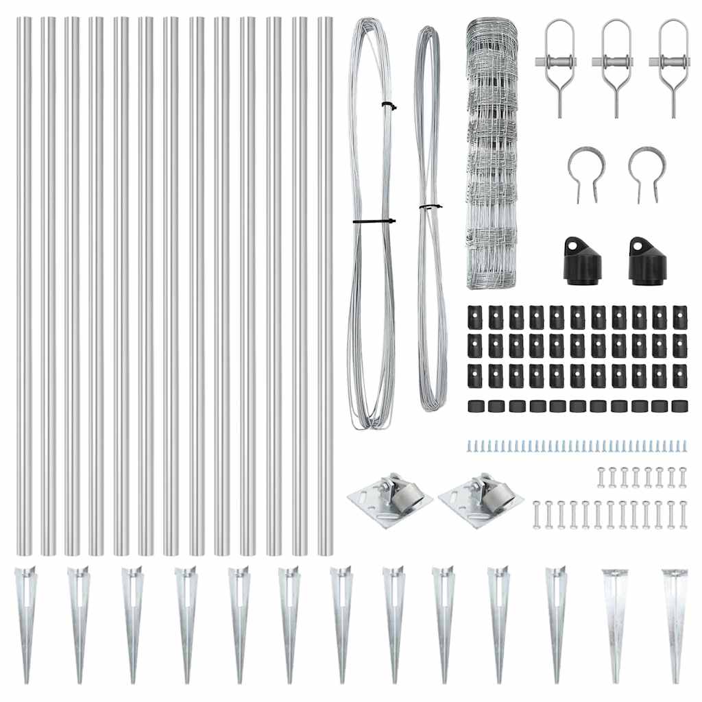 Der vidaXL Field Fence verbindet robustes Design aus verzinktem Stahl mit praktischer Verwendung und ist eine erstklassige Barriere für Außenflächen. Mit seinem glänzenden silbernen Aussehen und der strapazierfähigen Bauweise sorgt er dafür, dass alles sicher bleibt und gleichzeitig deinen Garten oder deine Farm aufwertet. Robuste Konstruktion: Die verzinkte Stahlstruktur ist hochwertig und UV-beständig, was dir Sicherheit bei jedem Wetter gibt. Starker Halt: Hergestellt für Stabilität, ist dieses Design perfekt dafür geeignet, schwerere Dinge sicher zu halten und eine zuverlässige Leistung zu garantieren. Einfache Installation: Alle benötigten Teile, wie Paneele und Pfosten, sind enthalten, sodass du schnell und einfach aufbauen kannst. Vielseitige Verwendung: Ideal für Außenbereiche, sodass du verschiedene Zaunbedarfe erfüllen kannst. Stylisches Aussehen: Die glatte Oberfläche verleiht deinem Außenbereich einen modernen Touch und erfüllt dabei ihre Funktion.