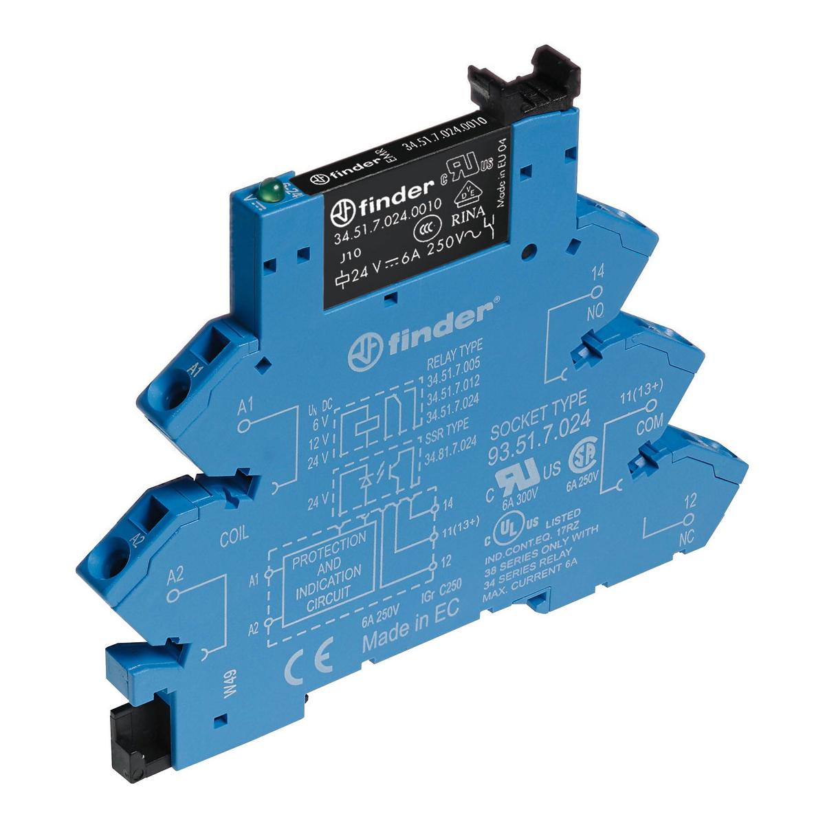 Koppelrelais für DIN-Schiene mit Zugfederklemmen, 1 Wechsler 6 A / 250 V AC, Spulenspannung 240 V AC, Kontaktmaterial AgNi, LED, Reststromunterdrückung und EMV-Entstörung sind in der Fassung integriert