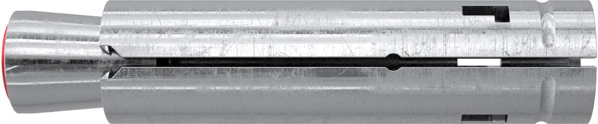 Der fischer Schwerlastanker TA M ist ein Innengewindeanker aus galvanisch verzinktem Stahl für die Vorsteckmontage. Bei der Montage wird der Konus in die Spreizhülse gezogen und verspannt diese gegen die Bohrlochwand. Die Kunststoffkappe schützt das Gewinde vor Verschmutzung. Dieses bleibt dadurch gängig. Der Schwerlastanker ist ideal für die Befestigung von Absturzsicherungen, Anlagen und Maschinen in ungerissenem Beton.