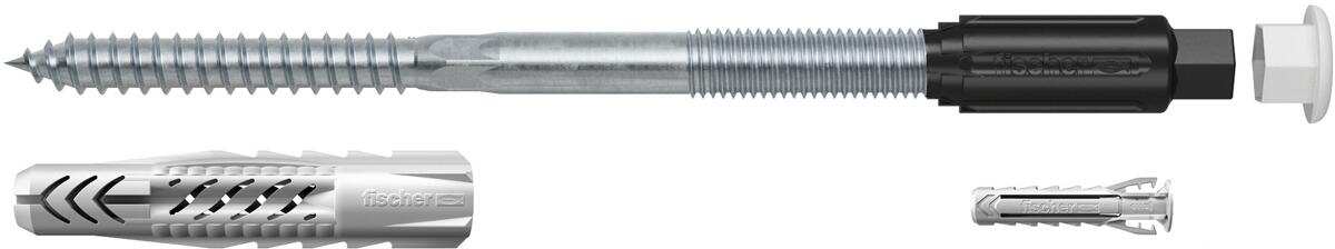 Das fischer Abstandsmontagesystem Thermax 8 ist eine Lösung zur Befestigung in der Außenwand ohne Wärmebrücken im WDVS. Die Stockschraube mit dem glasfaserverstärkten Konus fräst sich selbstschneidend durch den Putz in den Dämmstoff. Die Stockschraube wird bei der Montage in den Universaldübel UX gedreht und verankert somit sicher im Baustoff. Der Anti-Kälte-Konus am Kopf der Stockschraube unterbricht die Wärmebrücke und nimmt die äußere Befestigung auf. Der Thermax befestigt leichte Lasten wie Leuchten, Briefkästen oder Blitzableiter in Beton, Porenbeton und Mauerwerk aus Loch- und Vollstein.