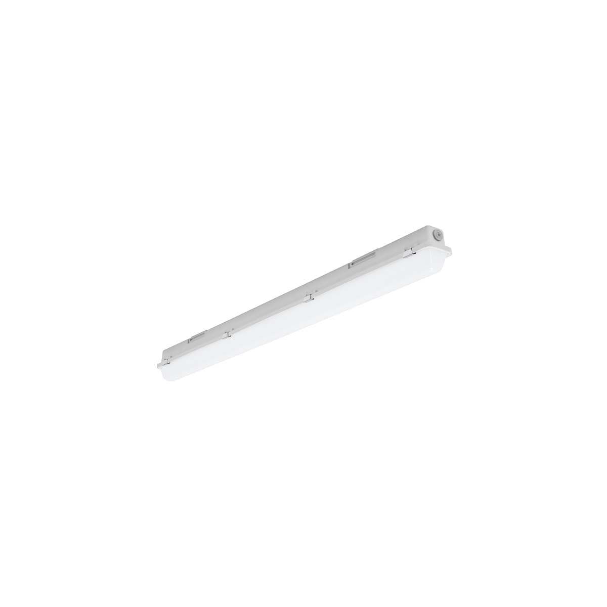 LED Feuchtraum-Wannenleuchte mit einstellbarer Lichtleistung (MultiLumen), im Auslieferungszustand ist der Maximalwert eingestellt. Gehäuse aus schwer entflammbarem, glasfaserverstärktem Polyester (GRP) hellgrau. Alterungsbeständige, geschäumte Polyurethandichtung (PU). Mit integriertem LED-Konverter. Geräteträger weiß aus Stahlblech. Die LED-Module sind durch eine autorisierte Fachkraft austauschbar. Wanne aus UV-beständigem Polymethylmethacrylat (PMMA), opalisiert. Wannenverschluss aus Edelstahl. Einfache Deckenbefestigung mit beiliegenden multifunktionalen Schnellmontage-Befestigungsklammern aus Edelstahl (Leuchte einklipsbar). Ausrichten der Leuchte durch den variablen Verschiebebereich um 60 mm. Leuchte mit begrenzter Oberflächentemperatur, für Bereiche, in denen leitfähige Stäube zu erwarten sind.