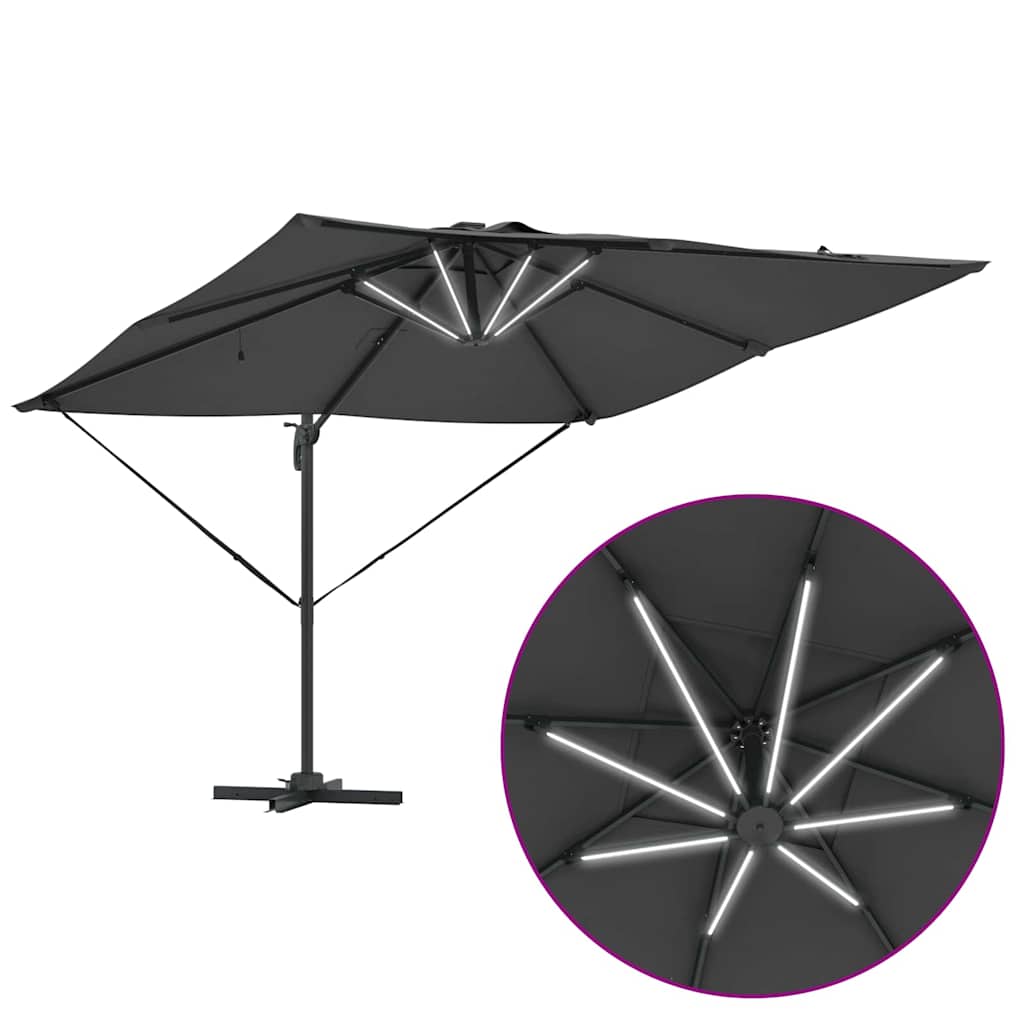 Dieser freischwingende Sonnenschirm ist der perfekte Begleiter für entspannte Outdoor-Vibes. Sein praktisches Design passt super auf Terrassen, in Gärten und Lounges. Die schicke Aluminiumkonstruktion verleiht deinem Raum einen modernen Touch. So schaffst du nicht nur Schatten, sondern auch einen einladenden Platz zum Entspannen. Die integrierten LED-Lichter sorgen für eine gemütliche Atmosphäre am Abend, während die 360-Grad-Drehung sicherstellt, dass du immer den besten Schutz vor der Sonne hast, egal wo sie steht. Aluminiumkonstruktion: Aus hochwertigem Aluminium, robust und schick. Er ist wasserabweisend, was ihn zur idealen Wahl für den Sommer macht. Die glatte Oberfläche wertet jeden Außenbereich auf. Integrierte LED-Beleuchtung: Mit solar- oder batteriebetriebenen LED-Lichtern hast du auch nach Einbruch der Dunkelheit Freude an deinem Außenbereich. Diese Lichter sind praktisch unter dem Schirm platziert und sorgen für angenehmes Licht, das perfekt für Abende mit Freunden ist. Außerdem hilft das Solarsystem, Energie zu sparen. Verstellbare Funktionen: Mit einem Fuß, der sich um 360 Grad dreht, und einem kippbaren, faltbaren Design passt sich dieser Schirm leicht deinen Sonnenbedürfnissen an. Die Handkurbel macht das Öffnen und Schließen super einfach, sodass du ihn ohne großen Aufwand verstellen kannst. Das sorgt für maximalen Komfort. Mühelose Lagerung & Pflege: Kompakt und leicht zu verstauen durch das faltbare Design, das die saisonale Lagerung zum Kinderspiel macht. Um ihn lange gut zu halten, vermeide aggressive Reinigungsmittel und nutze eine Abdeckung, wenn er nicht gebraucht wird. So verhinderst du Abnutzung und schaffst zusätzlichen Schutz. Umfassende Abmessungen: Mit den Maßen 286 cm x 285 cm x 270 cm bietet dieser Schirm viel Schatten, ideal fürs Essen im Freien oder zum Entspannen am Pool. Sein robuster Rahmen passt sich perfekt in jede Außenanordnung ein.