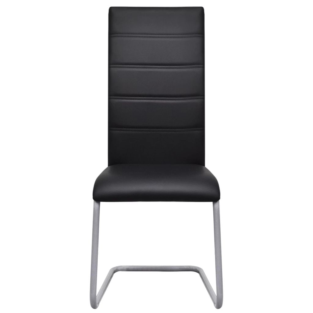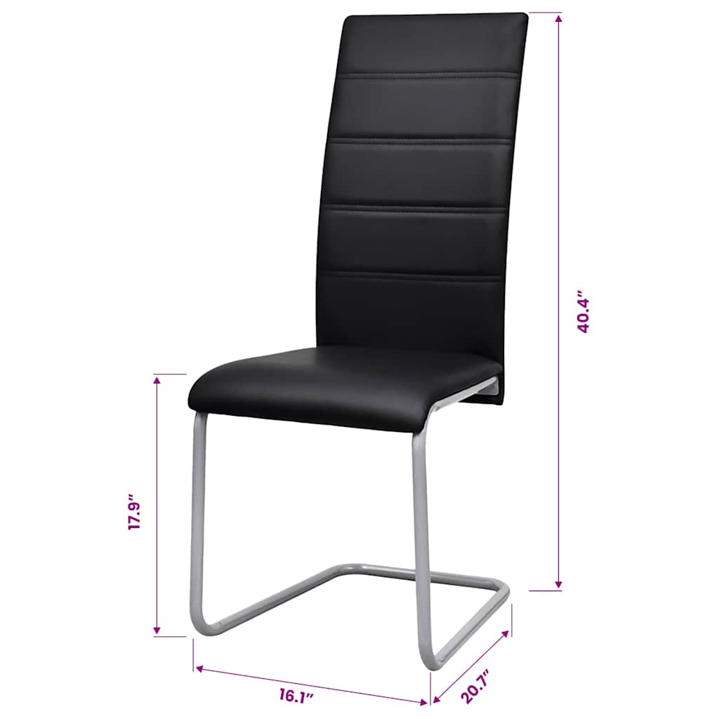 Diese Freischwinger haben einen schlanken, stromlinienförmigen Look, der perfekt zum modernen Wohndesign passt. Sie verleihen Ihrem Essbereich zu Hause oder Ihrem Büro einen Hauch von Stil und Eleganz. Der schaumgepolsterte Sitz ist mit hochwertigem Kunstleder bezogen, das strapazierfähig und langlebig ist. Die hohe Rückenlehne bietet maximalen Komfort und unterstützt optimal Ihren Rücken. Darüber hinaus ist dieses Esszimmerstuhl-Set nicht nur leichtgewichtig, sondern auch stabil, dank der starken Stahlrohrstruktur. Die Montage ist ganz einfach. Die Lieferung umfasst 2 Esszimmerstühle.