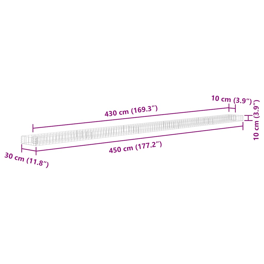 - Außenmaße: 450 x 30 x 10 cm (L x B x H)