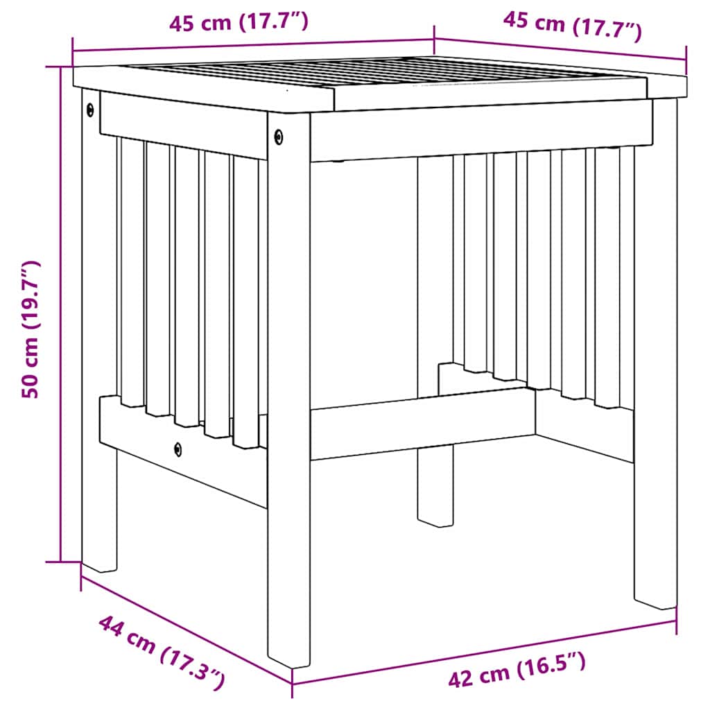 Dieser Beistelltisch ist eine tolle Ergnzung fr jeden Auenbereich, ideal fr Balkone, Grten und Terrassen. Hergestellt aus massivem Akazienholz ist er wetterfest und die verwitterte Oberflche passt super zur Natur. Ob du Drinks bei Treffen servierst oder drauen ein Buch liest, er ist fr Erwachsene gedacht, die stilvolle und praktische Gartenmbel wollen. Kleiner Raum? Kein Problem! Er ist kompakt genug und bietet Funktionalitt ohne Platz zu verschwenden. Der rustikale Stil verleiht ihm Charme und passt gut zu anderen Gartenmbeln, sodass er eine wunderschne Atmosphre in deinem Garten schafft.