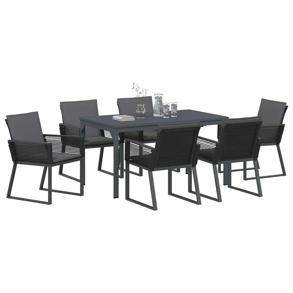 Dieses coole Garten-Dining-Set vereint Form und Funktion und bringt ein schickes, schlankes Design in deinen Außenbereich. Es eignet sich perfekt zum Essen im Freien und schafft mit seinen klaren Linien und dem minimalistischen Stil eine einladende Atmosphäre, die toll für Gärten und Terrassen ist. Das Dining-Set hat eine schicke anthrazitfarbene Oberfläche, die sowohl gut aussieht als auch ein klasse Outdoor-Dining-Erlebnis bietet. Egal, ob du Sommerfeiern schmeißt oder ruhige Frühstücke im Freien genießt, dieses Set macht jede Mahlzeit besonders. Hochwertige Materialien: Hergestellt aus Poly-Rattan und pulverbeschichtetem Stahl, bringt dieses Set schöne natürliche Texturen mit langlebigen industriellen Oberflächen zusammen. Das Poly-Rattan ist wasser- und UV-beständig und sorgt für jahrelangen Komfort. Der pulverbeschichtete Stahl ist robust und sieht gut aus ? passt perfekt in jede Outdoor-Umgebung. Verstellbares ausziehbares Design: Mit dem ausziehbaren Tisch hast du schnell mehr Platz für größere Gruppen. Ob du eine gemütliche Dinnerparty oder eine große Outdoor-Feier planst, dieses Feature sorgt dafür, dass du genügend Platz hast und jede Mahlzeit zu einem besonderen Erlebnis wird. Praktische Komponenten: Das Dining-Set hat durchdachte Details wie einen stabilen Rahmen und Armlehnen aus pulverbeschichtetem Stahl, die für Langlebigkeit sorgen. Das Poly-Rattan-Rückenteil sorgt für mehr Komfort und ergonomische Unterstützung während längerer Mahlzeiten im Freien. Vielseitiger moderner Stil: Perfekt für verschiedene Außenbereiche wie Gärten, Terrassen oder Patios. Das moderne Design fügt sich nahtlos in jede Outdoor-Deko ein und sorgt für einen schicken Look, der sowohl zu zeitgenössischen als auch rustikalen Stilen passt. Einfache Pflegehinweise: Halte das Set in Top-Zustand ganz easy; benutze einfach eine Abdeckung, wenn du es nicht nutzt, um es vor Wetterbedingungen zu schützen. So bleibst du immer sorglos und kannst weiterhin Freude daran haben.