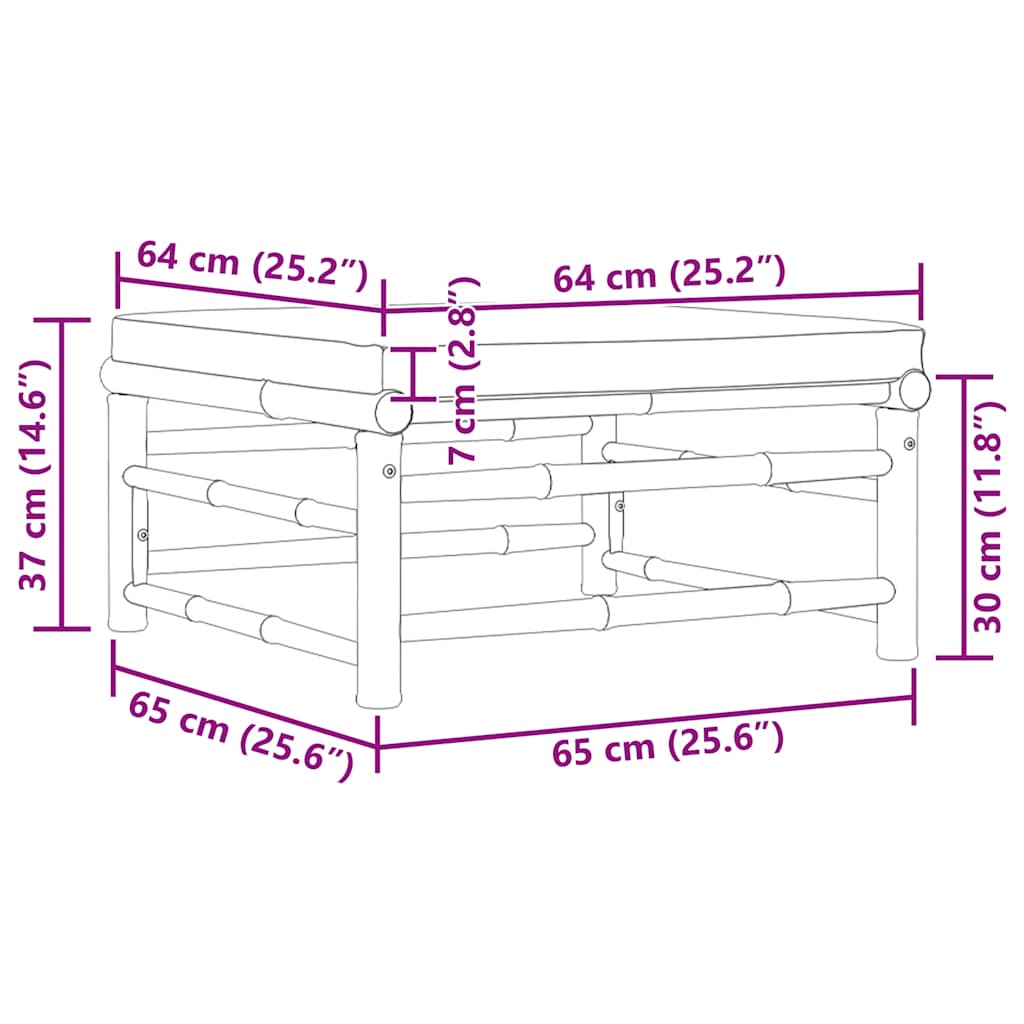Dieser Garten-Fußhocker ist eine großartige Ergänzung für Ihren Garten, Ihre Terrasse oder Ihren Innenhof, um mit Familie und Freunden zu plaudern oder einfach nur das Wetter zu genießen. Diese Ottomane besteht aus Bambus und ist daher robust und leicht zu reinigen. Das dick gepolsterte Kissen bietet zusätzlichen Komfort in Ihrer Freizeit. Dank seiner Leichtbauweise ist der Fußhocker leicht zu umstellen. Dank des modularen Aufbaus können Sie es in einer beliebigen Anordnung je nach Belieben platzieren. Hinweis: Um die Lebensdauer Ihrer Gartenmöbel zu verlängern, empfehlen wir Ihnen, diese regelmäßig zu reinigen und im Freien vor Niederschlägen oder starken Sonnenstrahlen zu schützen.Reinigung: Verwenden Sie eine milde SeifenlösungLagerung: Wenn möglich, an einem kühlen, trockenen Ort im Innenbereich lagern. Wenn das Produkt im Freien gelagert wird, schützen Sie es mit einer wasserdichten Abdeckung. Wischen und trocknen Sie das überschüssige Wasser oder den Schnee nach Regen oder Schneefall von ebenen Flächen. Sorgen Sie für eine ausreichende Luftzirkulation, um feuchtigkeitsbedingte Schäden zu vermeiden.