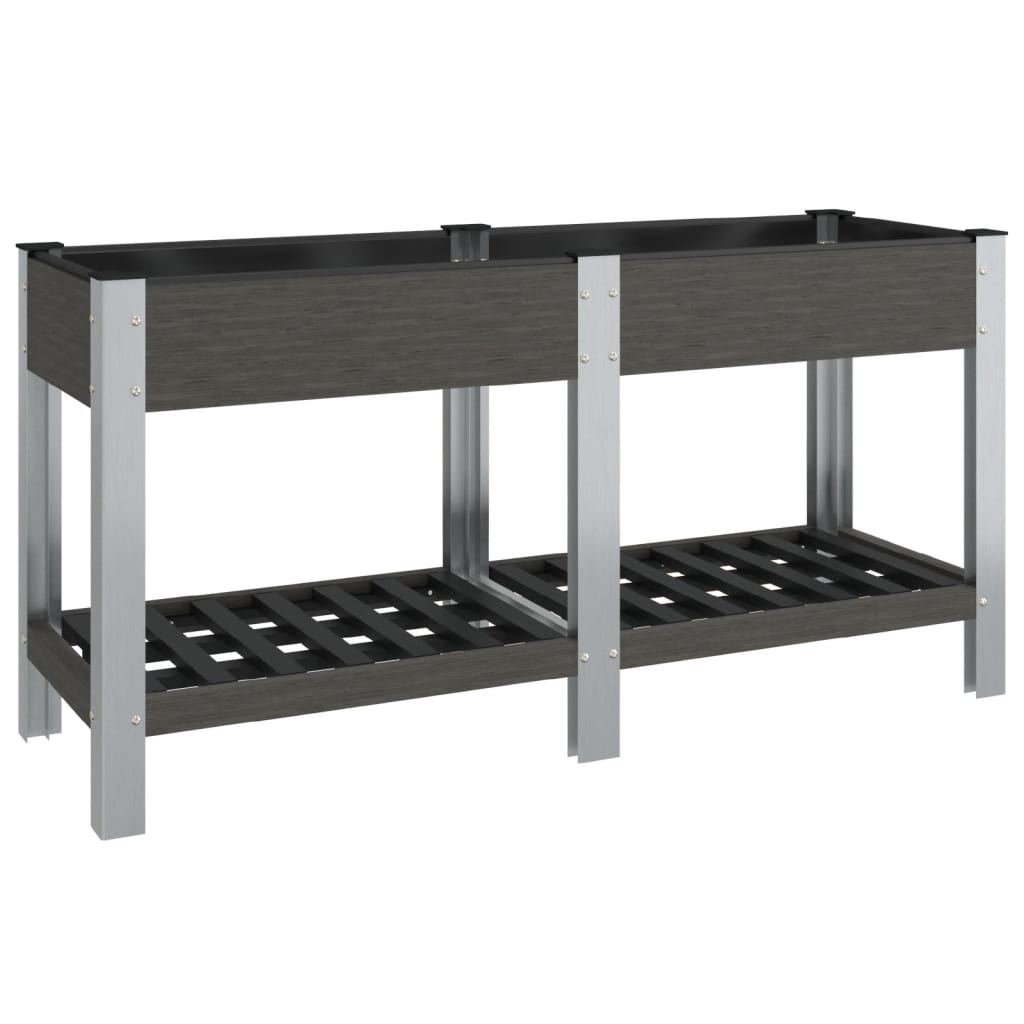 Dieses praktische Garten-Hochbeet ist eine hervorragende Wahl für Heimwerker, die ihre Gärten, Balkone oder Terrassen mit Pflanzen verschönern möchten. Langlebiges Material: Das Pflanzgefäß ist aus Holz-Kunststoff-Verbundwerkstoff gefertigt, was ihn langlebig, witterungsbeständig und für den Einsatz im Außenbereich geeignet macht.Viel Platz: Das Hochbeet bietet viel Platz für eine große Anzahl von Pflanzen, Gemüse, Kräutern und Blumen. Die Ablage stellt zusätzlichen Stauraum für verschiedene Töpfe und Werkzeuge zur Verfügung.Hervorragende Belüftung: Der Pflanzkübel ist mit offenen Böden versehen, was eine gute Belüftung der Pflanzen ermöglicht.Robuster Rahmen: Der Stahlrahmen verleiht dem Blumenkübel Robustheit und Stabilität. Hinweis:Jedes Produkt wird mit einer Montageanleitung in der Verpackung für einen einfachen Zusammenbau geliefert.