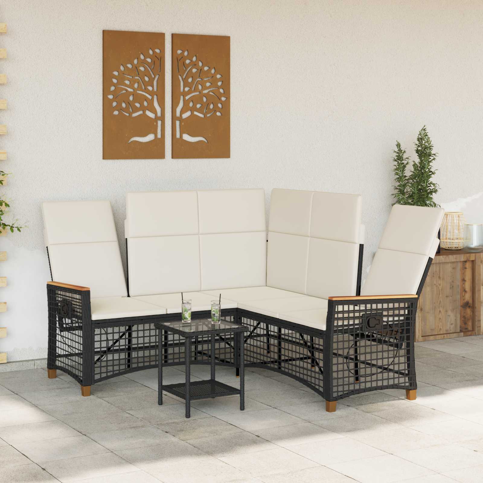 Dieses moderne Gartenliegesofa-Set sorgt für mehr Komfort im Freien. Es hat ein schlichtes und elegantes Design, perfekt zum Entspannen und wirkt dabei stilvoll ? ideal für Terrassen oder Gärten. Das praktische Design mit der schlanken Silhouette lädt dazu ein, die Freizeit auf moderne Weise zu genießen und einen schönen Außenbereich zu schaffen, in dem man entspannen oder Gäste empfangen kann. Rattan & Stahl kombiniert: Die Struktur aus Poly-Rattan und pulverbeschichtetem Stahl sorgt für einen modernen Look und hervorragende Langlebigkeit. Diese Kombination bietet eine stabile Basis und hält verschiedenen Wetterbedingungen stand, ideal für den ganzjährigen Einsatz im Außenbereich. Verstellbare Rückenlehnen: Das Sofa wurde für hohen Komfort gestaltet, mit 2 verstellbaren Rückenlehnen, die sich je nach deinen Bedürfnissen anpassen lassen. Ob beim Lesen, Essen oder für ein Nickerchen, die manuelle Verstellung ermöglicht eine flexible Anpassung der Sitzposition. Reißverschluss-Sitz- und Rückenkissen: Die bequemen Sitz- und Rückenkissen sind mit einem Reißverschluss verbunden, was sowohl für den Komfort als auch für die einfache Pflege sorgt. Die Schaumstofffüllung sorgt für die richtige Menge an Weichheit und schafft einen einladenden Raum, in dem man entspannen oder Gäste bewirten kann. Wetterbeständige Eigenschaften: Das Sofadesign ist speziell für den Außenbereich gemacht, mit Eigenschaften, die UV-Strahlen und natürliche Elemente abwehren, sodass es auch gegen die Witterung stark bleibt. Stilvolle Armlehnen: Die flachen Rattanarmlehnen setzen nicht nur Akzente, sie unterstützen auch die klaren Linien des Designs und ergänzen den schlichten Charme, der sich gut in verschiedene Gartenlandschaften einfügt.