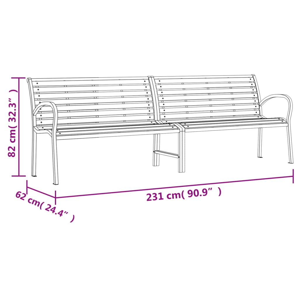 Diese Gartenbank ist ein echter Hingucker und verleiht jedem Garten oder Außenbereich eine angenehme Note. Robust und langlebig: Diese Gartenbank ist aus Holz gefertigt, was sie robust und langlebig macht.Gute Belüftung: Dank des Latten-Designs kann Wasser abfließen, was Holzfäule verhindert und die Lebensdauer der Gartenbank verlängert.Bequemes Sitzerlebnis: Mit einer Rückenlehne und Armlehnen ausgestattet, bietet die Gartenbank höchsten Komfort.Erstklassiges Material: Das Gestell der Gartenbank ist mit einer Pulverbeschichtung versehen, die Schutz vor Rost und Korrosion bietet. Es ist somit witterungsbeständig und eine praktische Wahl für den Einsatz im Außenbereich.