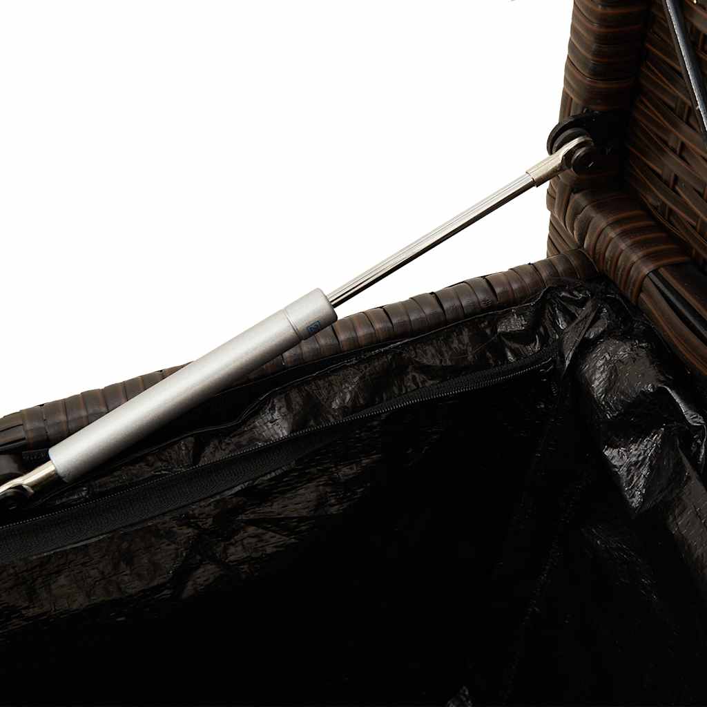 Diese Sitzbank bietet nicht nur eine bequeme Sitzgelegenheit im Außenbereich, sondern eignet sich auch perfekt, um Gartenkissen, Gartengeräte, Handtücher und andere Gegenstände ordentlich und griffbereit aufzubewahren. Langlebiges Material: PE-Rattan, auch als Poly Rattan bekannt, ist ein robustes, pflegeleichtes synthetisches Material, das die Optik von natürlichem Rattan aufweist. Es kennzeichnet sich durch ein geringes Eigengewicht und lässt sich einfach reinigen. Aufgrund seiner Haltbarkeit und Witterungsbeständigkeit wird es häufig bei der Herstellung von Gartenmöbeln verwendet.Stauraum: Der Gartenhocker verfügt über einen Stauraum an der Unterseite, der mit einem wasserfesten Beutel zur Aufbewahrung von Kissen, Spielzeug und anderen Gegenständen ausgestattet ist. Der innere Beutel kann mit Klettverschlüssen sicher am Sitz befestigt werden, was für Stabilität sorgt und Bewegungen verhindert.Sicheres und einfaches Öffnen und Schließen: Die Gasfeder erleichtert das Öffnen des Deckels und verhindert das Einklemmen der Finger.Bequemes Sitzerlebnis: Dieser Gartensessel mit dick gepolsterten Kissen bietet ein angenehmes Sitzgefühl.Abnehmbarer und waschbarer Bezug: Diese Sitzkissen verfügen über abnehmbare Bezüge für einfaches Waschen und Pflegen. Gut zu wissen:Wir empfehlen dir, deine Gartenmöbel mit einer wasserdichten Hülle zu schützen, um lange Zeit eine ansprechende Optik aufzuweisen.