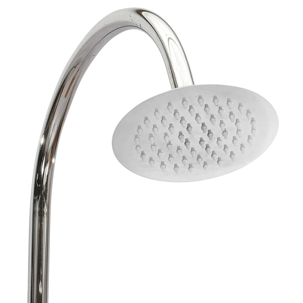 Genieße eine erfrischende Dusche im Freien mit dieser Outdoor-Dusche aus Teak-Massivholz! Diese Gartendusche besteht aus extrem haltbarem Teak-Hartholz, das technisch getrocknet und anschließend fein geschliffen worden ist, um eine sehr glatte Textur aufzuweisen. Teakholz wird für seine außergewöhnliche Festigkeit und Witterungsbeständigkeit geschätzt und eignet sich somit weitaus besser als jede andere Holzart für Gartenprodukte. Teak ist die perfekte Wahl, wenn du dir langlebige Gartenmöbel anschaffen möchtest. Das Rohr besteht aus Edelstahl und ist daher robust und leicht zu reinigen. Mit einem Drehknopf und einem Duschkopf, in idealer Höhe angebracht, lässt sich diese Outdoor-Dusche ganz einfach bedienen. Dank des großen, rutschfesten Bodens ist die Außendusche stabil und bietet einen sicheren Platz zum Duschen. Darüber hinaus bietet die Ablage zusätzlichen Platz für eine Seife oder andere wichtige Duschutensilien. Gut zu wissen: Wir empfehlen, das Produkt in den kalten Monaten in einer trockenen und warmen Umgebung aufzubewahren, um seine Lebensdauer zu verlängern.