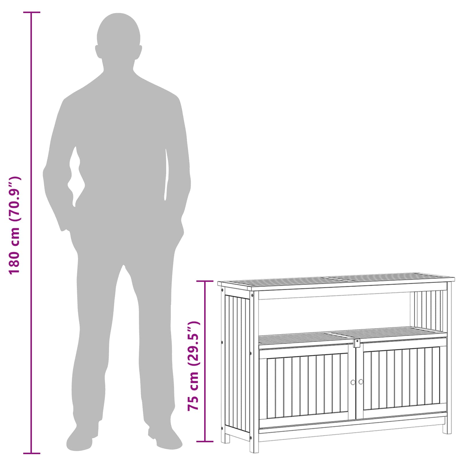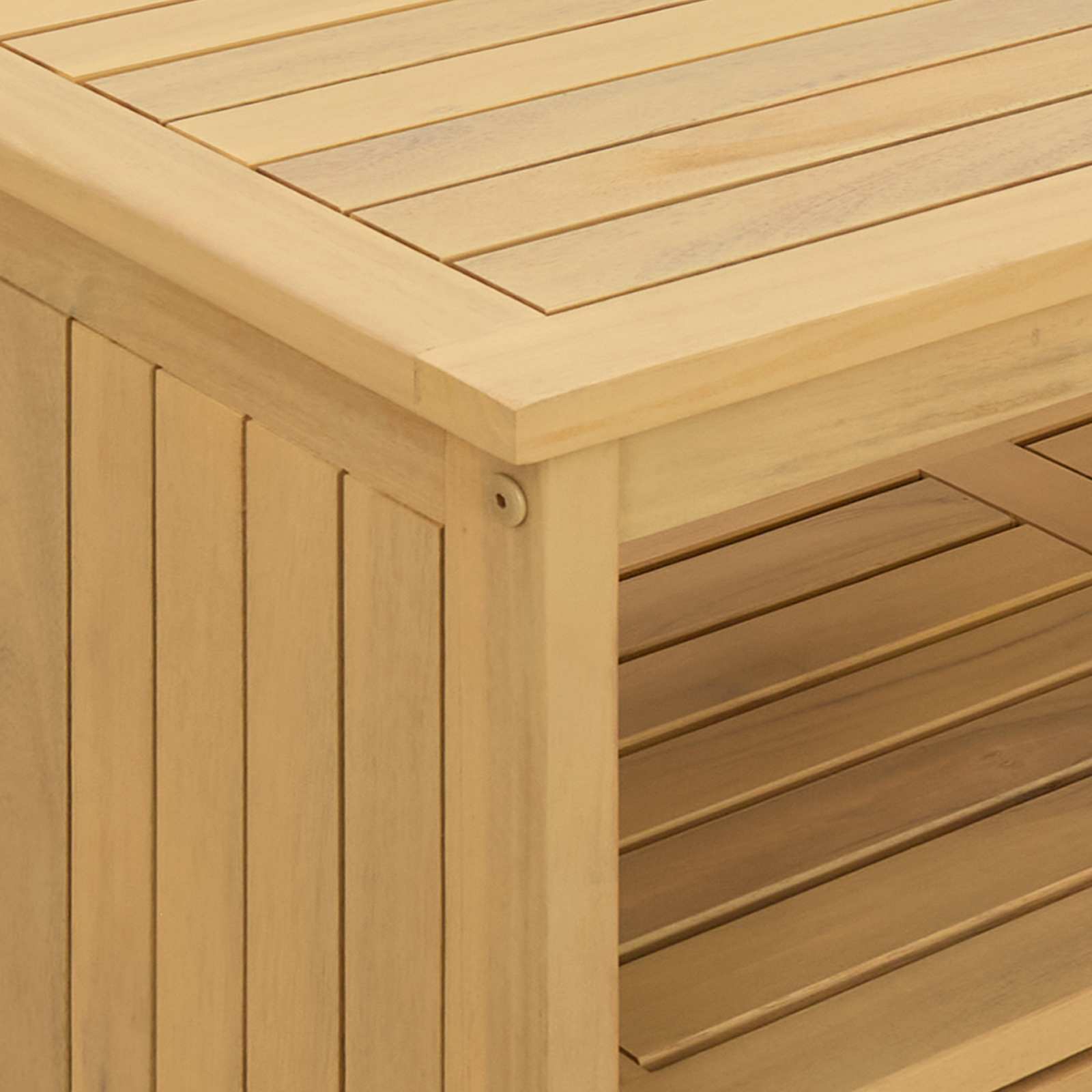 Dieser stylische Gartentisch ist eine super Ergänzung für jede Innen- oder Außenfläche. Er verbindet rustikalen Charme mit praktischer Nutzung und besteht aus massivem Akazienholz, das seine natürliche Schönheit und Haltbarkeit zeigt. Sein robustes Design bietet einen warmen, einladenden Look, perfekt für Gärten und Terrassen, wo er sowohl zum Ausstellen als auch zum Lagern genutzt werden kann und den Raum mit seiner stilvollen Präsenz verbessert. Massivholz Akazie: Dieser Tisch aus solidem Akazienholz schafft eine einladende Atmosphäre und garantiert Haltbarkeit, egal ob drinnen oder draußen. Er ist bekannt für seine Widerstandsfähigkeit gegen Wetter und perfekt für Topfpflanzen oder Deko. Der warme Holzton bringt schönheit in jeden Raum und sorgt für eine stylische, robuste Oberfläche zur Organisation und Präsentation von Dingen. Praktische Regale: Der Tisch hat praktische Regale, die viel Platz bieten und optimal für Gärten, Terrassen oder Wohnzimmer sind. Nutzer können Bücher, Deko oder Gartenzubehör ordentlich unterbringen, was ihn zu einem vielseitigen Möbelstück macht, das sich verschiedenen Bedürfnissen anpasst. Die einfache Regalstruktur hilft bei der Ordnung. Wasserfestes Design: Dank der eingearbeiteten Wasserbeständigkeit sorgt dieser Konsolentisch für Langlebigkeit und behält seinen Reiz über die Zeit. Ideal für feuchte und trockene Klimazonen, ist er sehr pflegeleicht und braucht nur gelegentlich mal ein Wischen. Dieses praktische Design ist ideal für den Alltag. Vielseitig einsetzbar: Der Tisch eignet sich für verschiedene Anwendungen und funktioniert sowohl drinnen als auch draußen. Er verwandelt sich leicht von einem Gartenmöbelstück zu einem stilvollen Konsolentisch im Wohnzimmer und passt einfach zu unterschiedlichsten Einrichtungsstilen. Seine rustikale Ausstrahlung verbessert sowohl modernes als auch traditionelles Dekor und zeigt Flexibilität im Design. Einfach zu pflegen & montieren: Der Aufbau ist unkompliziert und braucht nur einen Schraubendreher und die Hilfe einer weiteren Person. Nach dem Zusammenbau benötigt die Pflege nur ein feuchtes Tuch für die regelmäßige Reinigung, sodass der Tisch in einem super Zustand bleibt. So wird die Benutzung für alle leicht gemacht.