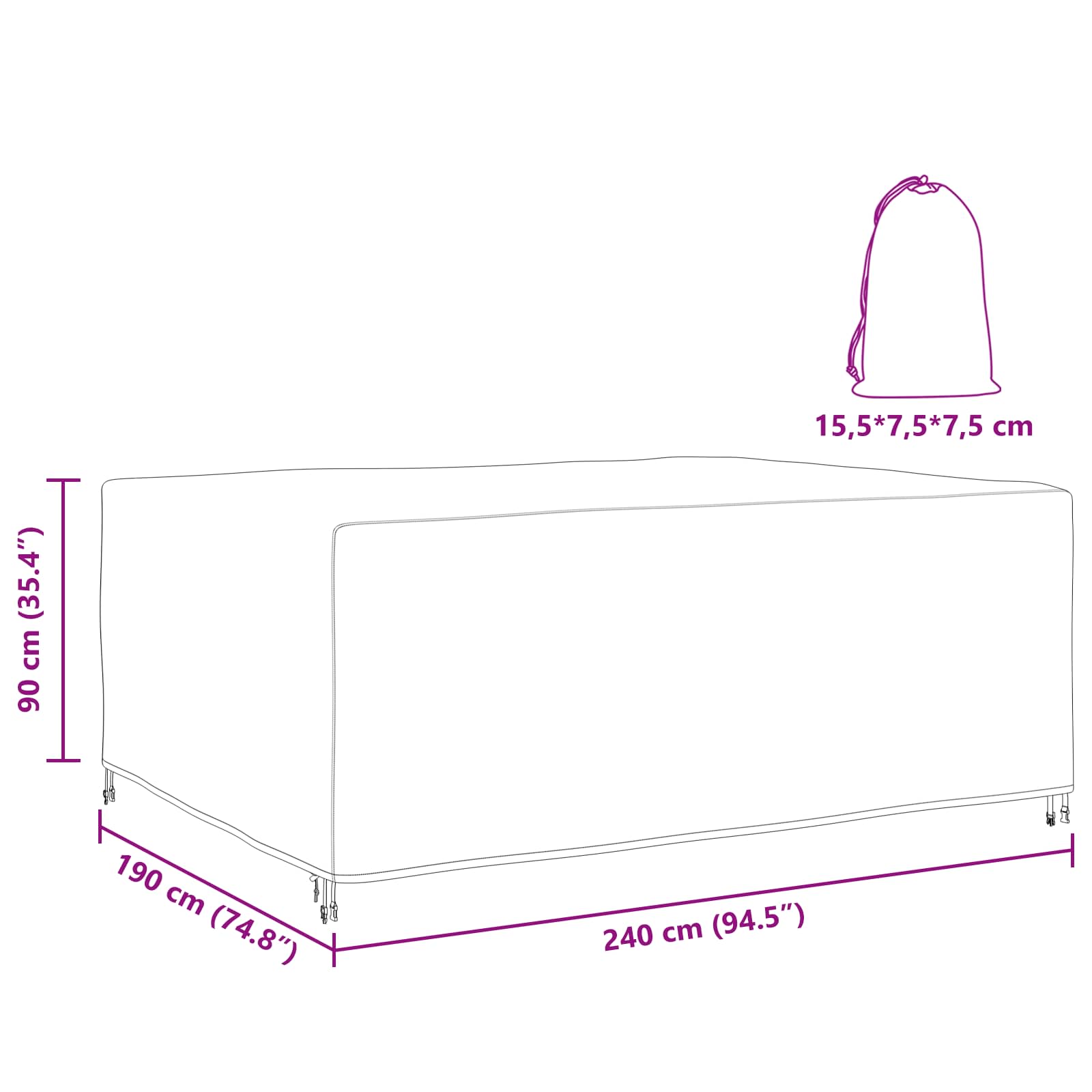 - Gesamtabmessungen: 240 x 190 x 90 cm (L x B x H)