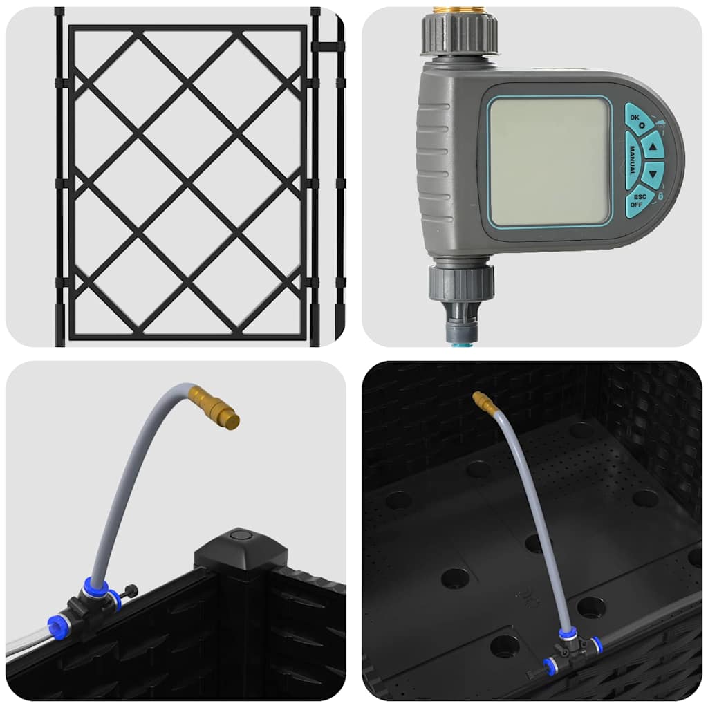 - Lieferinhalt: Pflanzer, Spalier, Bewässerungssystem