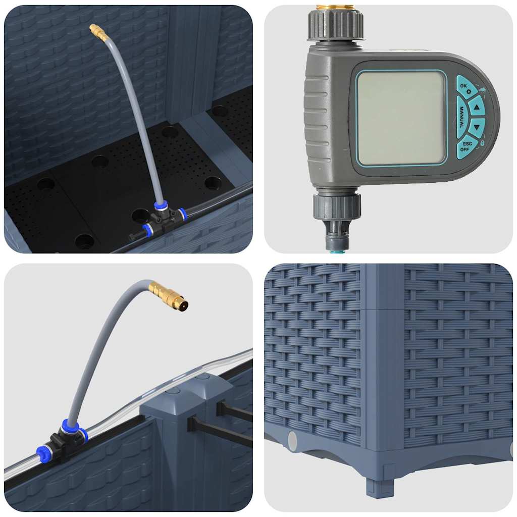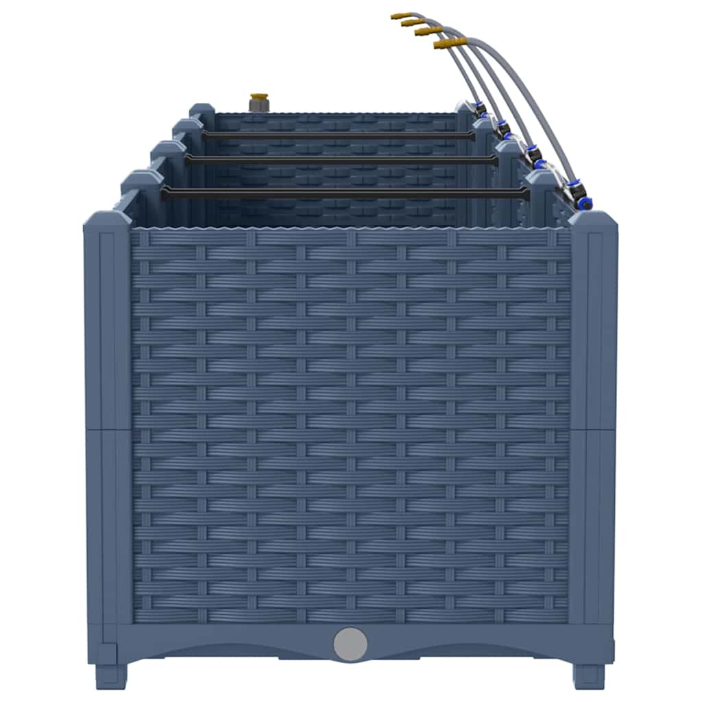 Der moderne graue Pflanzkasten bringt Stil und Funktionalitt in dein Zuhause. Er bringt Natur ins Zimmer und verschnert Auenbereiche. Dank des integrierten Bewsserungssystems sind deine Pflanzen immer gut versorgt, egal wie erfahren du im Grtnern bist. Ideal fr das Leben in der Stadt, passt er perfekt auf Balkone, Terrassen oder drinnen. Der Pflanzkasten ist aus langlebigem, UV-bestndigem Plastik-Rattan und sieht dabei toll aus. Hier finden bis zu drei Pflanzen Platz, damit du beeindruckende Arrangements kreieren kannst. Der Pflanzer passt sich vielen Einrichtungsstilen an und sorgt dafr, dass deine Pflanzen prchtig gedeihen und gleichzeitig gut aussehen.