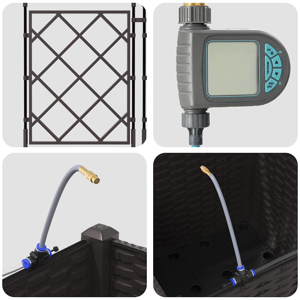 - Lieferumfang: Pflanzer, Spalier und Schlauchanschluss
