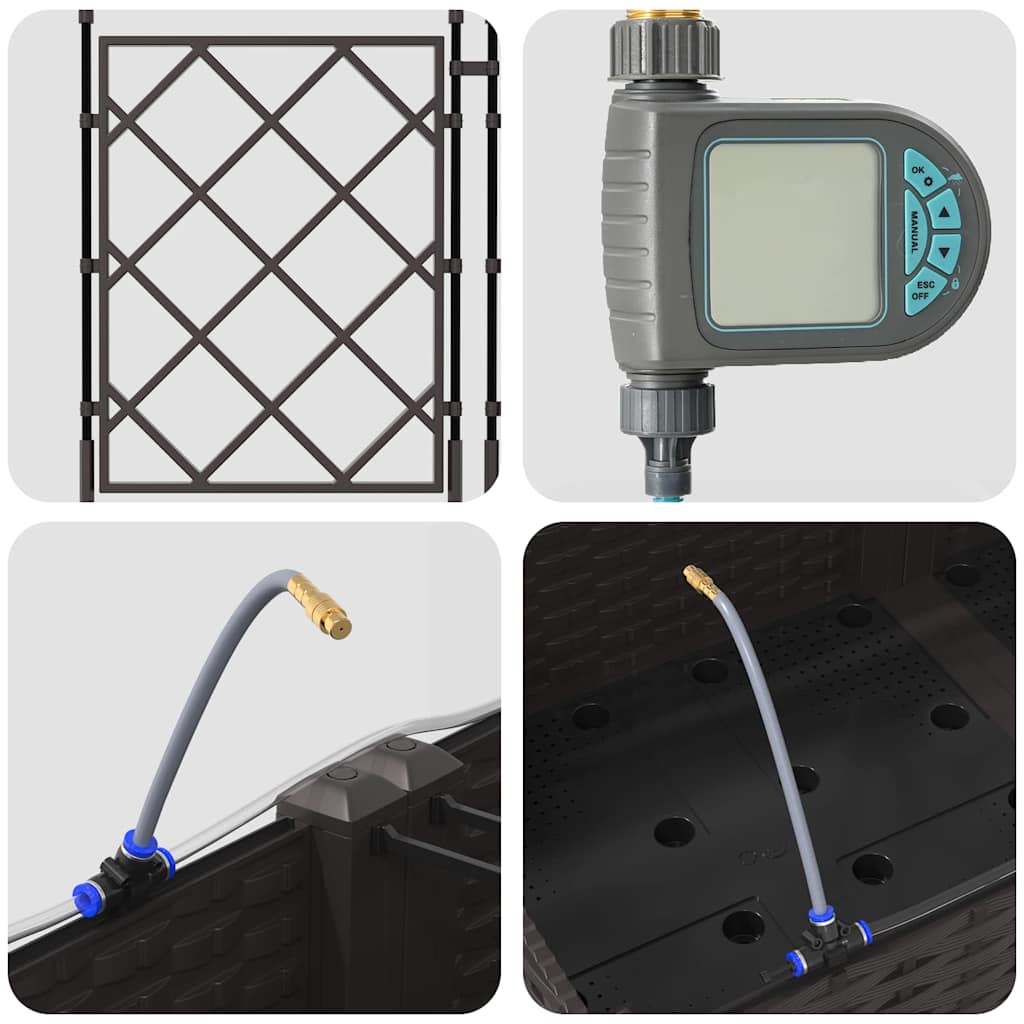 - Lieferumfang: Pflanzkasten mit Spalier und Bewässerungssystem.