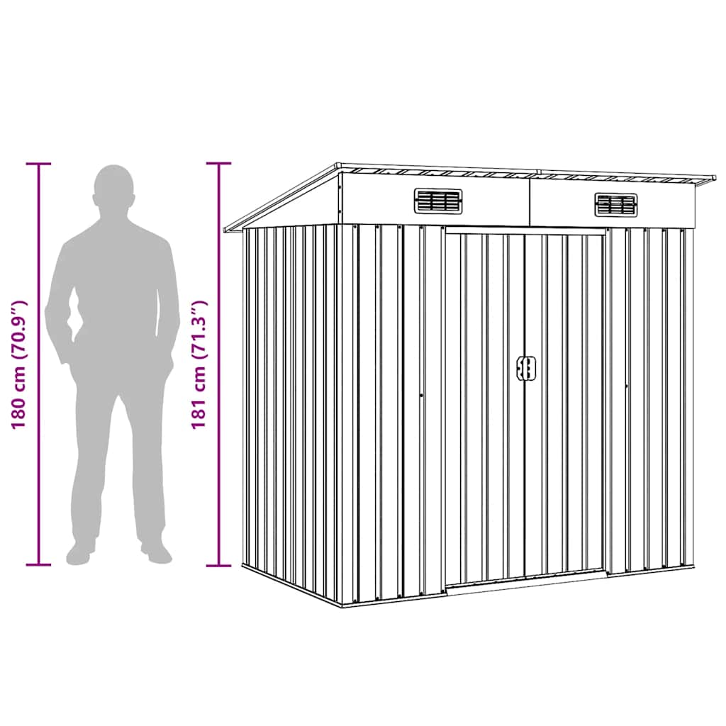 Dieser Gartenschuppen ist perfekt für die Lagerung einer Vielzahl von Werkzeugen und Geräten. Dieser Gartenschuppen hat 2 Entlüftungsöffnungen an der Vorderseite, die für eine hervorragende Luftzirkulation sorgen. Die doppelten Schiebetüren an der Vorderseite erlauben ein bequemes Ein- und Austreten aus dem Häuschen. Dank der verzinkten Stahlkonstruktion mit zusätzlicher Zinkbeschichtung ist der Geräteschuppen langlebig, stabil und robust, so dass Rost und extreme Witterungsbedingungen ihm nichts anhaben können. Die fertig zugeschnittenen, vorgebohrten Teile und die mitgelieferte Aufbauanleitung garantieren eine einfache und schnelle Montage.