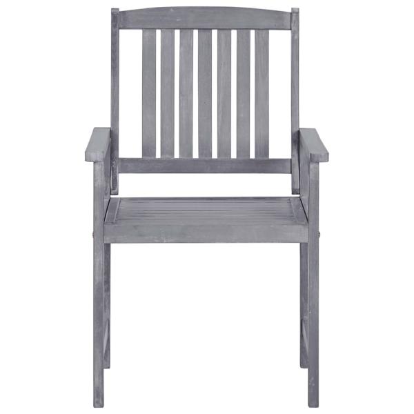 Mit diesem Set aus trendigen Holz-Gartenstühlen sorgen Sie für zusätzlichen Komfort in Ihrem Außenbereich. Es ist ideal geeignet, um mit Familie und Freunden zu plaudern oder einfach nur ein entspannendes Sonnenbad zu genießen! Dieses Gartenstuhl-Set besteht aus massivem Akazienholz mit grauer Lackierung. Massives Akazienholz ist ein Hartholz mit dichter Maserung, das nicht nur belastbar, sondern auch verschleißfest ist. Dieses Holzstuhl-Set ist daher stabil, langlebig und witterungsbeständig. Die Holzbeine sorgen für eine ausgezeichnete Stabilität. Darüber hinaus lässt sich die Stuhloberfläche ganz einfach mit einem feuchten Tuch reinigen.
