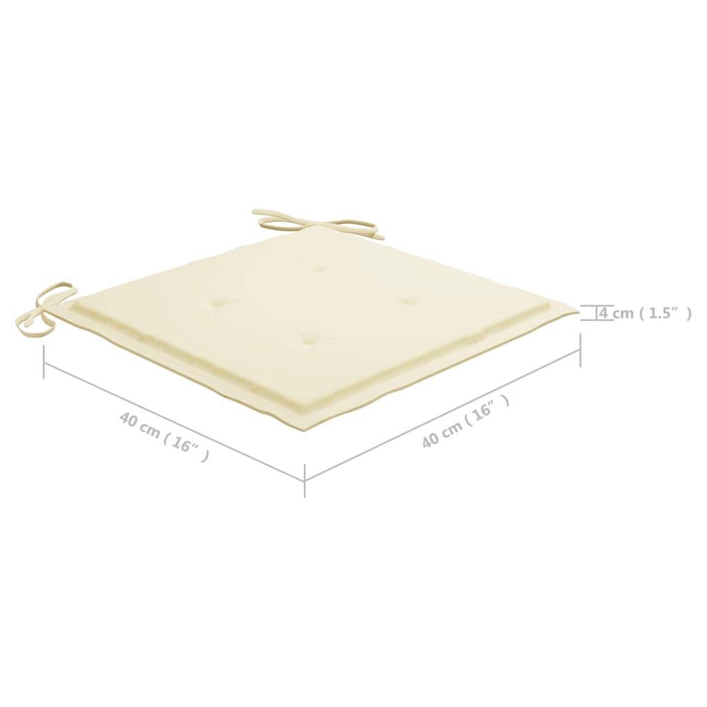 Diese klappbaren Holzstühle mit einem schlichten und zugleich eleganten Design werden Ihnen ein komfortables Sitzgefühl bieten. Das für dieses Möbelstück verwendete Teakholz ist technisch getrocknet und anschließend fein geschliffen worden, um eine sehr glatte Textur aufzuweisen. Teakholz ist für seine außergewöhnliche Festigkeit und Witterungsbeständigkeit geschätzt und eignet sich daher besser für Gartenmöbel als jede andere Holzart. Massives Teakholz ist die perfekte Wahl, wenn Sie ein langlebiges Gartenmöbel haben möchten. Die geschliffene Oberfläche lässt sich leicht mit einem feuchten Tuch reinigen. Diese Garten-Essstühle sind außerdem leicht und lassen sich somit völlig flexibel und leicht umstellen. Bei Nichtgebrauch können die Gartenstühle leicht zusammengeklappt werden. Darüber hinaus bieten die mitgelieferten Auflagen zusätzlichen Sitzkomfort.
