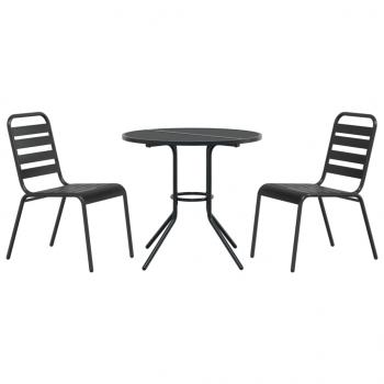 Dieses Gartenstuhl-Set mit stilvollem Look ist eine auffällige Ergänzung für deinen Indoor- und Outdoor-Wohnbereich. Pulverbeschichteter Stahl: Dieses Gartenmöbel-Set besteht aus pulverbeschichtetem Stahl, einem außergewöhnlich harten und starken Material, das Robustheit und Stabilität gewährleistet. Die Pulverbeschichtung bildet eine Schutzschicht gegen Rost, Korrosion und Verschleiß.Sitzkomfort: Dank des Latten-Designs, der abgerundeten Rückenlehne passt sich der Gartenstuhl dem Körper perfekt an und bietet optimalen Komfort.Stapelbar: Das stapelbare Design der Stühle spart Platz im Raum.Gitter-Design: Die Gitter-Tischplatte verfügt über ein wunderschönes Muster und bietet den idealen Platz für Getränke, Snacks und andere wichtige Sachen.Vielseitig einsetzbar: Dieses multifunktionale Outdoor-Stuhl-Set hat eine perfekte Form und passt in jeden Outdoor-Bereich aus deinem Zuhause. Das Outdoor-Möbel-Set kann auch in deiner Küche, im Esszimmer, im Wohnzimmer, auf dem Balkon usw. verwendet werden.