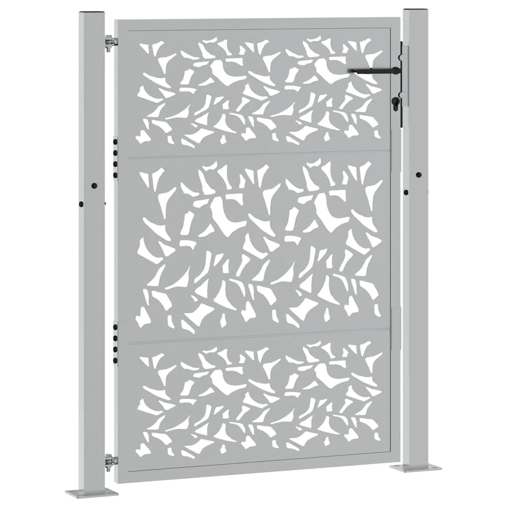 Dieses Gartentor stellt eine perfekte Kombination aus Stärke und Eleganz dar und bietet daher einen idealen Eingangspunkt am Zaun um den Garten oder die Terrasse. Hochbelastbare Konstruktion: Dieses Zauntor ist aus wetterfestem Stahl gefertigt. Wetterfester Stahl ist von Natur aus korrosionsbeständig. Er bildet eine schützende Rostschicht gegen Korrosion, sobald er der Witterung ausgesetzt wird. Du brauchst ihn also nicht zu streichen. Dadurch kannst du Wartungs- und Reparaturkosten einsparen. Die markante braune Farbe des wetterfesten Stahls ist sicherlich ein Blickfang. Wetterfester Stahl ist außerordentlich langlebig und hält dem Test der Zeit stand.Lasergeschnittenes Design: Das Tor verfügt über ein wunderschönes lasergeschnittenes Design, das deinem Zuhause einen einzigartigen Charme verleiht.Abschließbare Konstruktion: Das Gartentor ist mit einem robusten Schließsystem ausgestattet, das mit drei passenden Schlüsseln geliefert wird, sodass das Terrassentor sicher verschlossen werden kann.Einfach zu montieren: Das Eingangstor wird komplett mit zwei Pfosten mit Flanschplatten und Montagezubehör für eine einfache Installation geliefert.Breite Anwendung: Das Metalltor eignet sich perfekt zur Verschönerung von Garteneingängen, Einfahrten und Grundstücksgrenzen und verbindet Funktionalität mit optischer Attraktivität. Gut zu wissen:Dieses Produkt ist noch nicht verrostet und weist beim Empfang eine normale Metallfarbe auf. Rost wird sich im Laufe der Zeit bilden. Du kannst den Rostprozess beschleunigen, indem du es mit Seifenwasser und Salzwasser besprühst. Um deine Kleidung fleckenfrei zu halten, vermeide den Kontakt mit der sich bildenden Rostschicht.