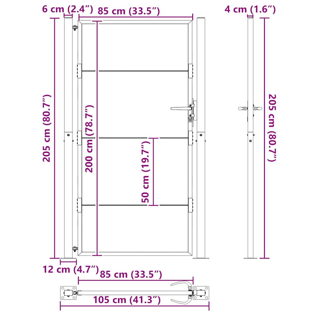 Dieses Gartentor stellt eine perfekte Kombination aus Stärke und Eleganz dar und bietet daher einen idealen Eingangspunkt am Zaun um den Garten oder die Terrasse. Hochbelastbare Konstruktion: Dieses Zauntor ist aus Cortenstahl gefertigt. Cortenstahl ist ein wetterfester Stahl, der von Natur aus korrosionsbeständig ist. Er bildet eine schützende Rostschicht gegen Korrosion, sobald er der Witterung ausgesetzt wird. Du brauchst ihn also nicht zu streichen. Dadurch kannst du Wartungs- und Reparaturkosten einsparen. Die markante braune Farbe des Cortenstahls ist sicherlich ein Blickfang. Wetterfester Stahl ist außerordentlich langlebig und hält dem Test der Zeit stand.Abschließbares System: Das Außentor ist abschließbar ? für zusätzliche Sicherheit.Einfach zu montieren: Das Eingangstor wird komplett mit zwei Pfosten mit Flanschplatten und Montagezubehör für eine einfache Installation geliefert. Gut zu wissen:Dieses Produkt ist noch nicht verrostet und weist beim Empfang eine normale Metallfarbe auf. Rost wird sich im Laufe der Zeit bilden. Du kannst den Rostprozess beschleunigen, indem du es mit Seifenwasser und Salzwasser besprühst. Um deine Kleidung fleckenfrei zu halten, vermeide den Kontakt mit der sich bildenden Rostschicht.