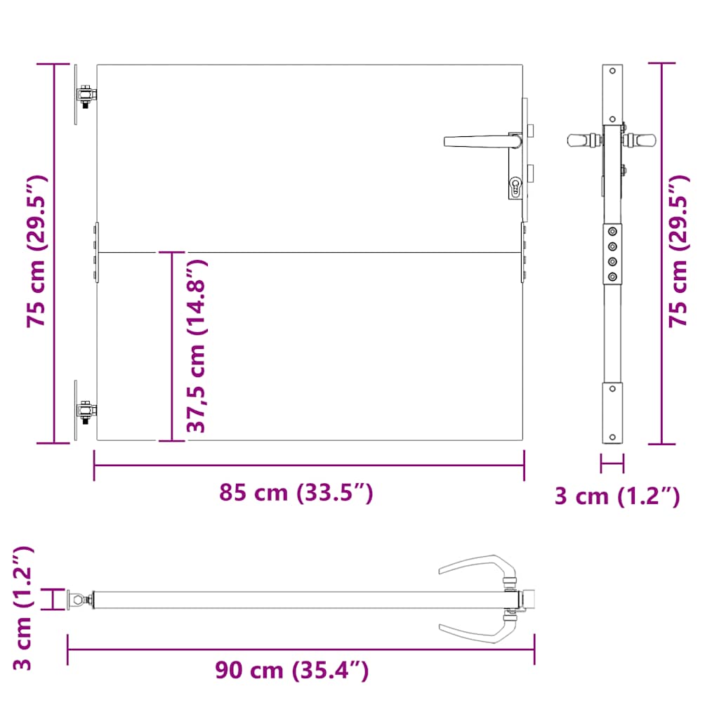 - Gesamtabmessungen: 85 x 3 x 75 cm (B x T x H)