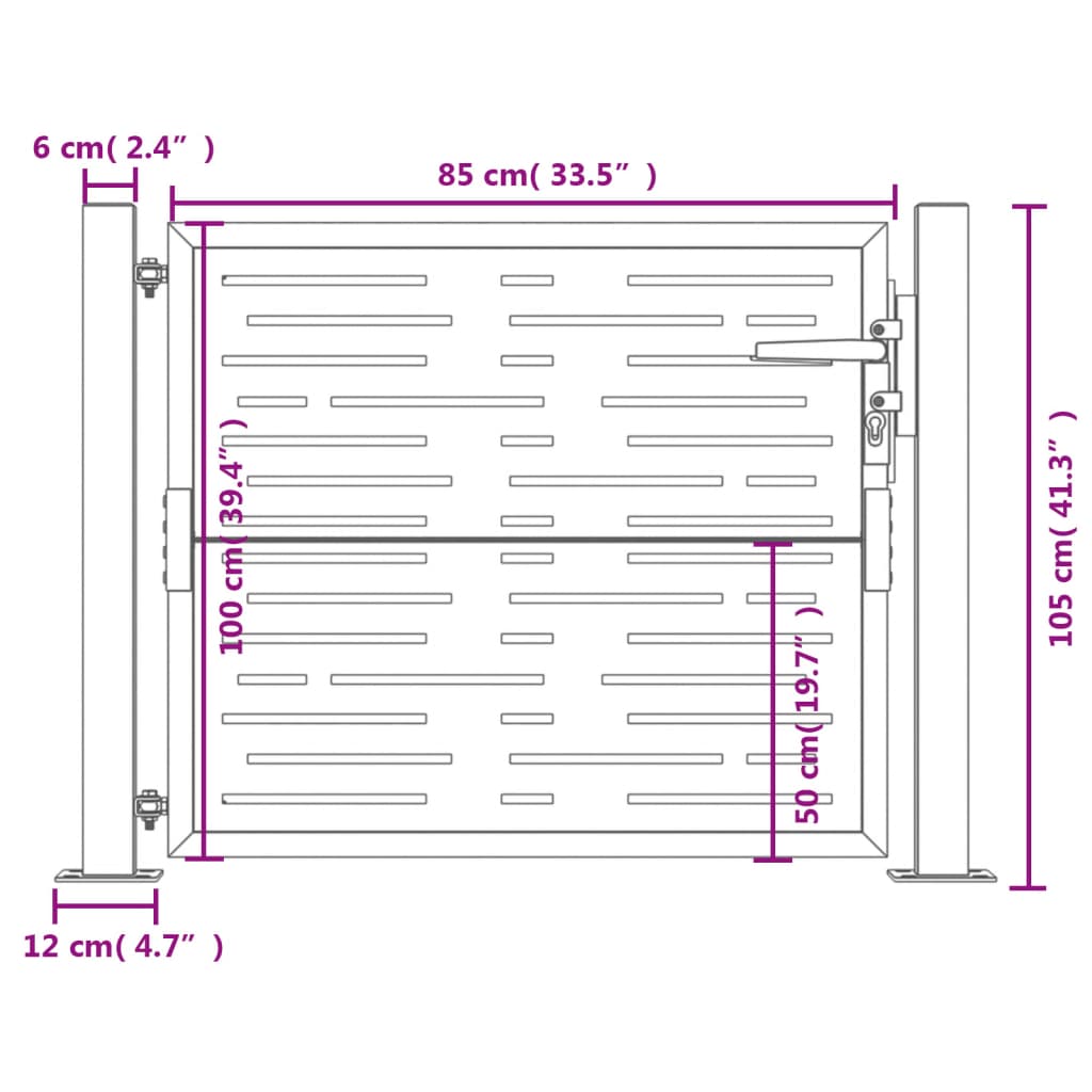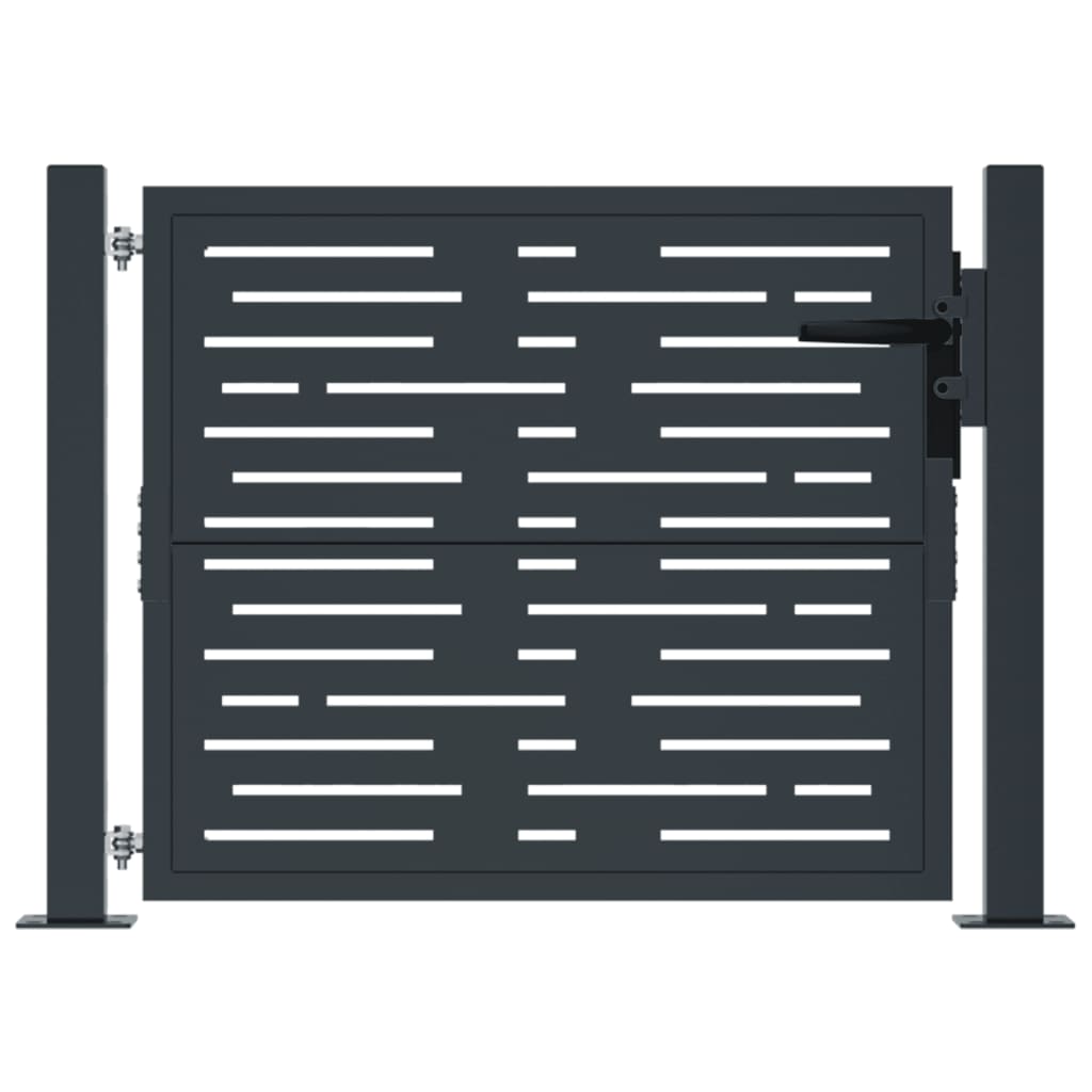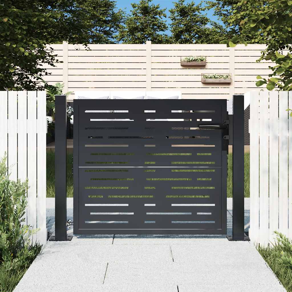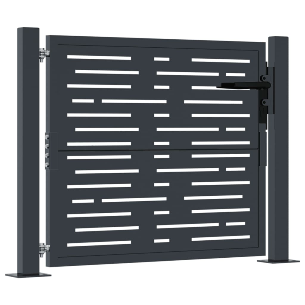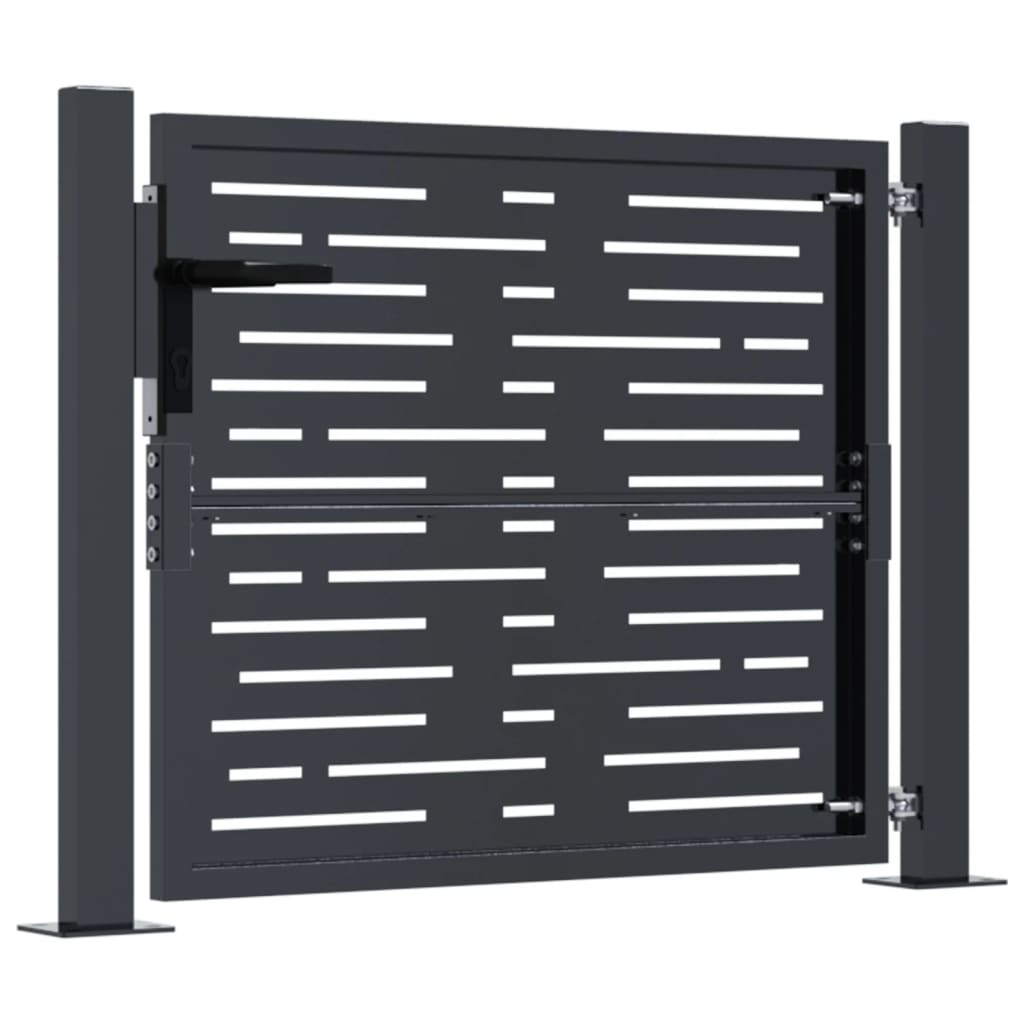 Dieses Gartentor stellt eine perfekte Kombination aus Stärke und Eleganz dar und bietet daher einen idealen Eingangspunkt am Zaun um den Garten oder die Terrasse. Robustes Material: Stahl ist ein außergewöhnlich hartes und starkes Material. Er bietet Robustheit und Stabilität. Der verzinkte Stahl bietet einen besseren Korrosionsschutz und eignet sich für Produkte, die im Freien und in rauen Umgebungen eingesetzt werden. Außerdem bildet die Pulverbeschichtung eine weitere Schutzschicht gegen Abnutzung und Verschleiß.Lasergeschnittenes Design: Das Zauntor verfügt über ein wunderschönes lasergeschnittenes Design, das deinem Zuhause einen einzigartigen Charme verleiht.Abschließbar: Das Stahltor für zusätzliche Sicherheit ausgestattet abschließbar.Stabile Basis: Die 4 Befestigungslöcher in der Grundplatte der Torpfosten ermöglichen eine sichere Befestigung. Gut zu wissen:Dieses Produkt sollte zusammengebaut werden.