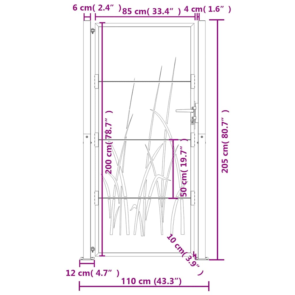 ARDEBO.de - Gartentor Anthrazit 105x205 cm Stahl Gras-Design