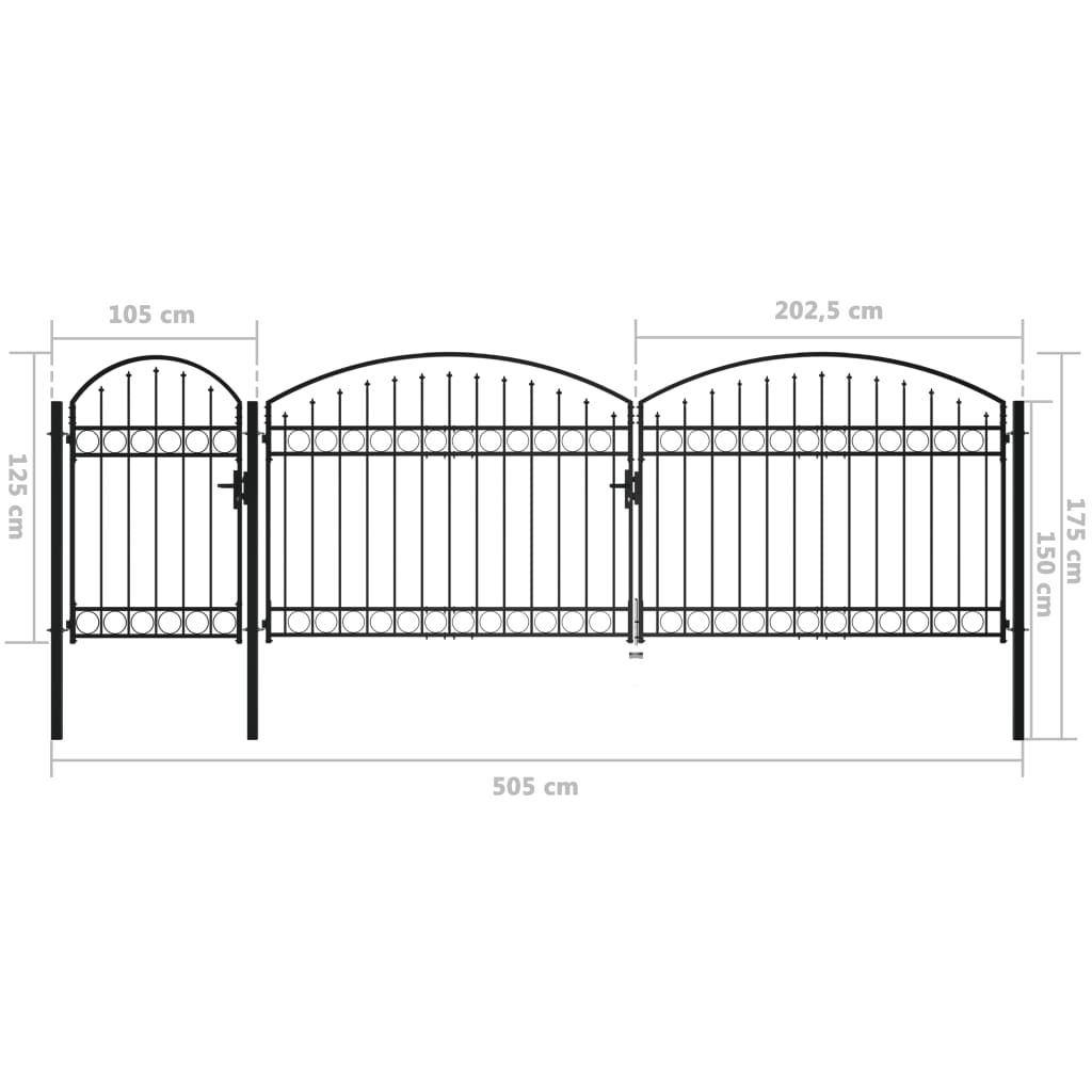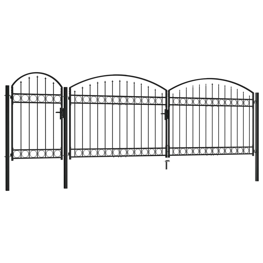 Dieses robuste und dennoch elegante Gartentor bildet eine praktische Sicherheitsbarriere für Ihren Garten, Ihre Terrasse oder Ihren Innenhof. Unser Gartentor bietet dank seines eleganten, gewölbten Designs sowie der starken horizontalen Streben zur Verstärkung des Rahmens ein hohes Maß an Sicherheit und bildet einen fabelhaften Eingang zu Ihrem Grundstück. Das Tor ist aus pulverbeschichtetem Stahl gefertigt und dadurch gegen Rost und Korrosion geschützt. Darüber hinaus ist dieses Zauntor mit einem Verriegelungssystem ausgestattet und verfügt über drei stabile Pfosten sowie stabile Scharniere, die eine einfache Montage ermöglichen. Außerdem fixiert die mitgelieferte Gewindestange zwei Hälften der Tore für zusätzliche Sicherheit an Ort und Stelle. Dieses Gartentor ist eine großartige Kombination aus Stil, Robustheit und Stabilität!