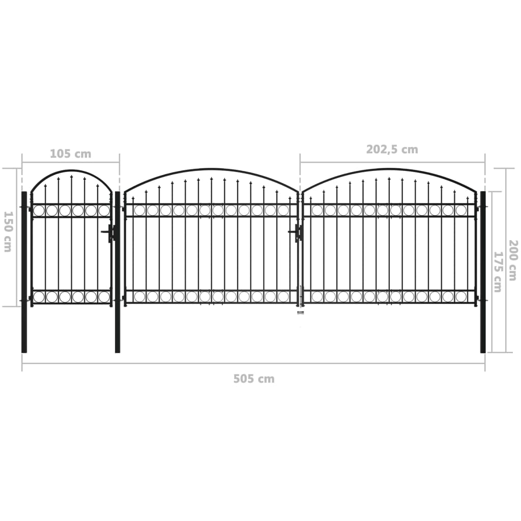 Dieses robuste und dennoch elegante Gartentor bildet eine praktische Sicherheitsbarriere für Ihren Garten, Ihre Terrasse oder Ihren Innenhof. Unser Gartentor bietet dank seines eleganten, gewölbten Designs sowie der starken horizontalen Streben zur Verstärkung des Rahmens ein hohes Maß an Sicherheit und bildet einen fabelhaften Eingang zu Ihrem Grundstück. Das Tor ist aus pulverbeschichtetem Stahl gefertigt und dadurch gegen Rost und Korrosion geschützt. Darüber hinaus ist dieses Zauntor mit einem Verriegelungssystem ausgestattet und verfügt über drei stabile Pfosten sowie stabile Scharniere, die eine einfache Montage ermöglichen. Außerdem fixiert die mitgelieferte Gewindestange zwei Hälften der Tore für zusätzliche Sicherheit an Ort und Stelle. Dieses Gartentor ist eine großartige Kombination aus Stil, Robustheit und Stabilität!