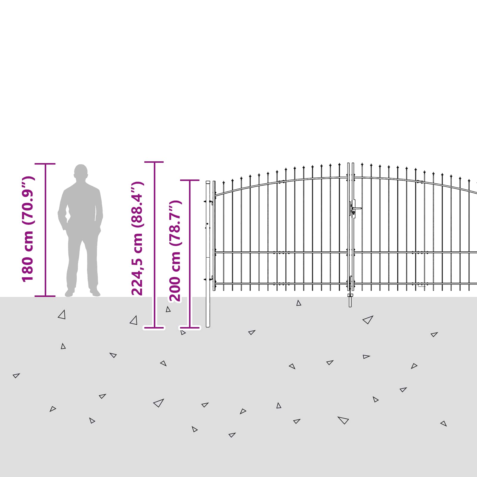 Dieses Gartentor kombiniert Funktionalität mit Stil und ist speziell für den Außenbereich gemacht. Hergestellt aus robustem pulverbeschichtetem Stahl, bietet es ein schickes spitzes Oberteil, das Sicherheit und einfachen Zugang gewährleistet. Aus hochwertigem pulverbeschichtetem Stahl für Langlebigkeit, wetterfest und sieht gut aus. Glatte Oberfläche bringt Eleganz und schützt vor Verblassen, verbessert das äußere Erscheinungsbild. Einfach zu montieren, alle Teile dabei für eine unkomplizierte Anbringung mit minimalem Werkzeugaufwand. Das Riegelschloss sorgt für einen zusätzlichen Sicherheitsfaktor und erleichtert das Abschließen. Mit 125 x 400 cm ist dieses Tor ideal für Gärten oder Höfe und vereint stilvollen Zugang mit Funktionalität in jedem Außenbereich.