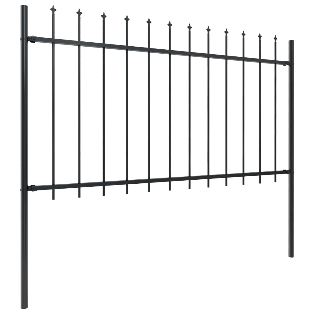 Bilden Sie einen eleganten Zaun rund um Ihren Garten, Ihr Zuhause oder Ihren Eingang! Dieser dekorative Gartenzaun aus Stahl besteht aus 10 Zaunelementen und 11 Pfosten und ist insgesamt 17 Meter lang. Er bietet Ihnen eine stabile, sichere und pflegeleichte Abgrenzung für Ihr Privat- oder Geschäftsgrundstück. Die vertikalen Stangen mit Speerspitzen und einer horizontalen Stütze für zusätzliche Stabilität bieten Ihnen ein hohes Maß an Sicherheit. Hergestellt aus robustem, pulverbeschichtetem Stahl, ist der Zaun sehr stabil, robust und langlebig. Dank des mitgelieferten Montagezubehörs lässt sich der Zaun auch ganz einfach montieren. Hinweis: Sie können mehrere Zaun-Sets kaufen, um den Zaun nach Belieben zu verlängern.