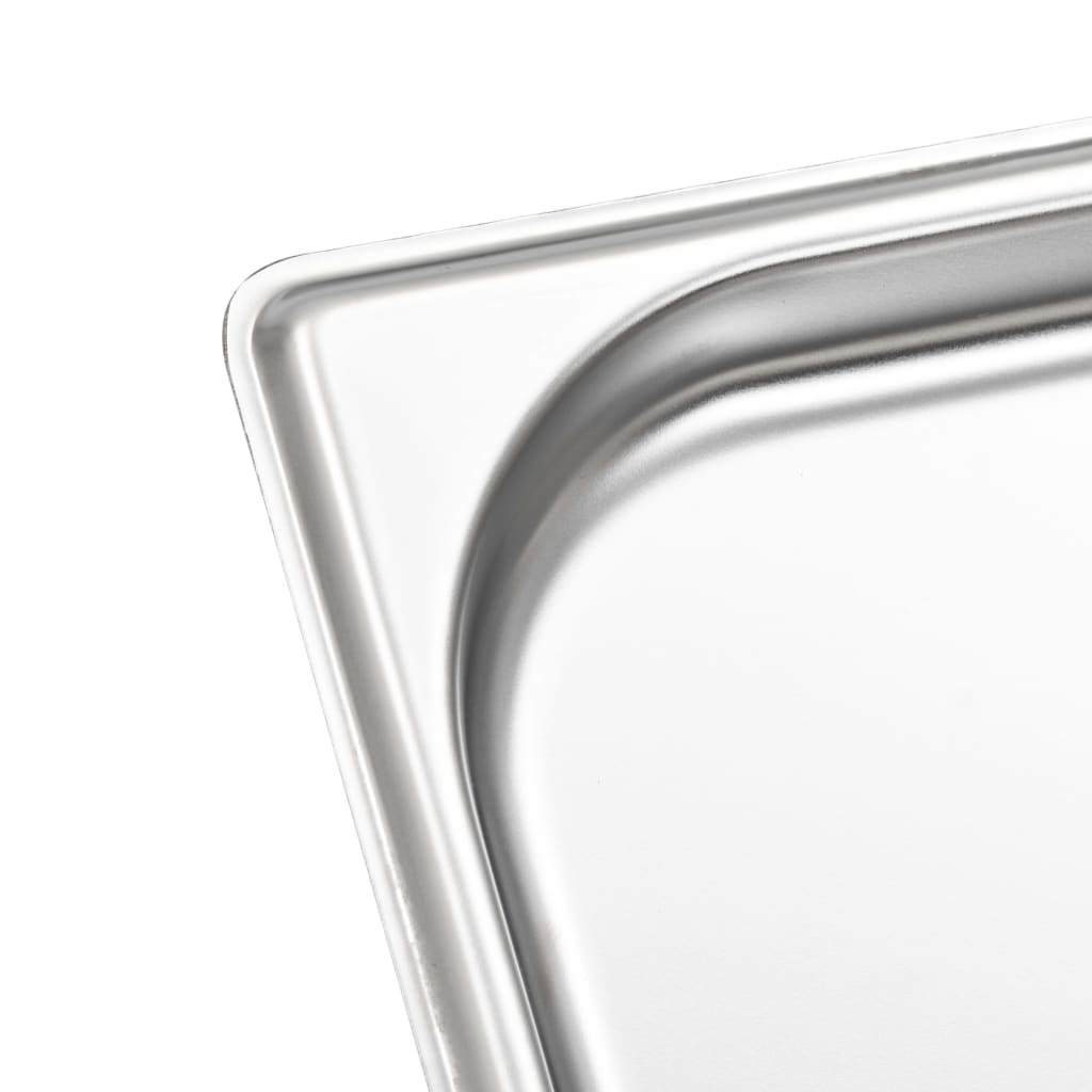 Diese stapelbaren Gastronorm-Behälter sind eine großartige Ergänzung zu Ihrem Küchengeschirr. Aus robustem Edelstahl gefertigt, weist der Gastronorm-Behälter eine solide Konstruktion auf. Dank des strapazierfähigen Materials ist er kratzfest und leicht zu reinigen. Das Bratblech mit Standard-Gastronorm- Abmessungen ermöglicht einen universellen Einsatz und eine Vielzahl von Kombinationen. Folglich passt es perfekt in alle professionelle Küchenschränke. Es eignet sich hervorragend für Bain-Marie, Chafing-Dishes und Salatbars. Das Kochgeschirr ist zudem stapelbar und kann demnach platzsparend verstaut werden. Daher ist sie sehr praktisch und ideal für den Einsatz in Restaurants, Hotels, auf Partys sowie zu Hause geeignet. Lieferung umfasst 12 Kochgeschirre.